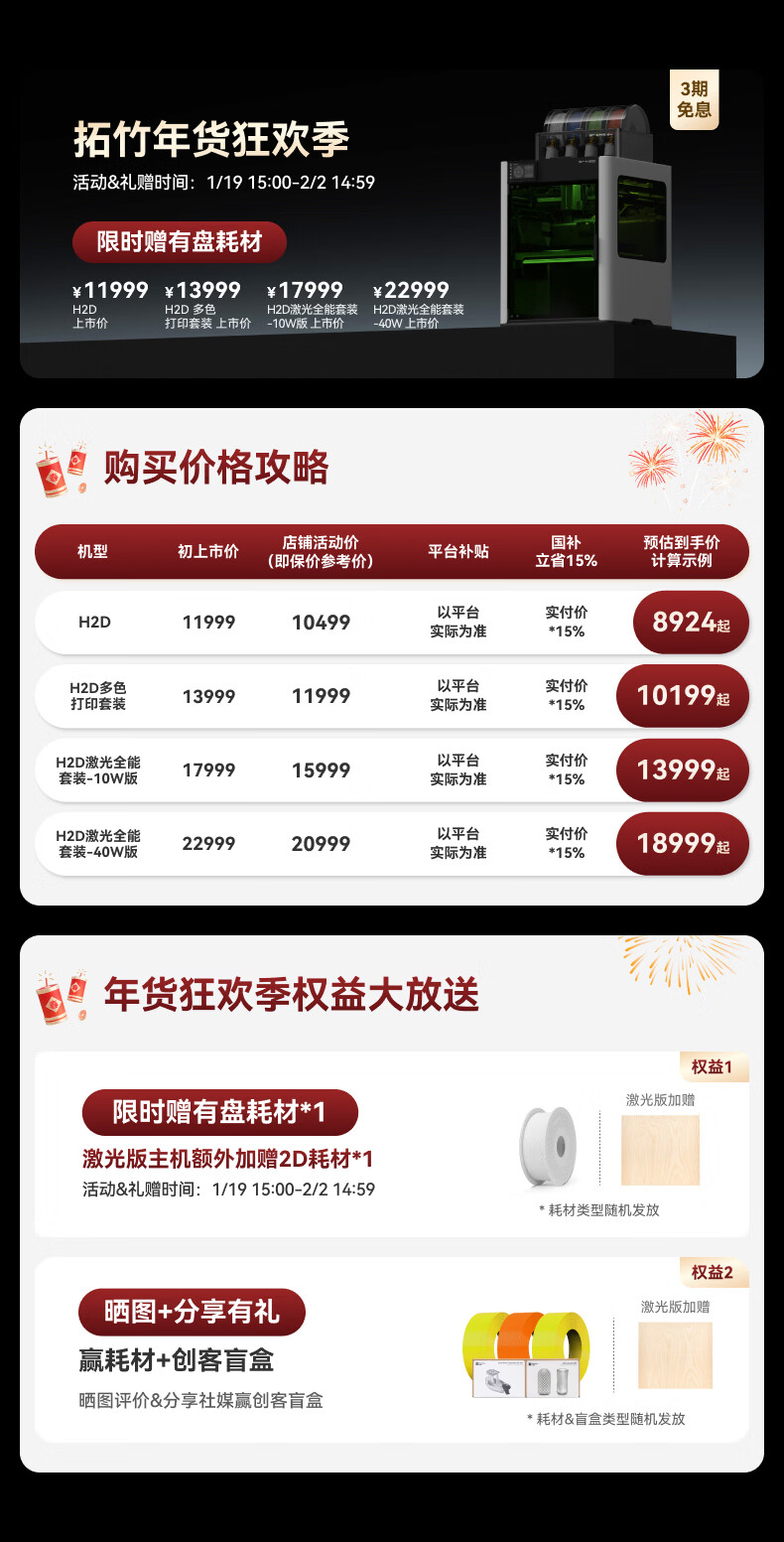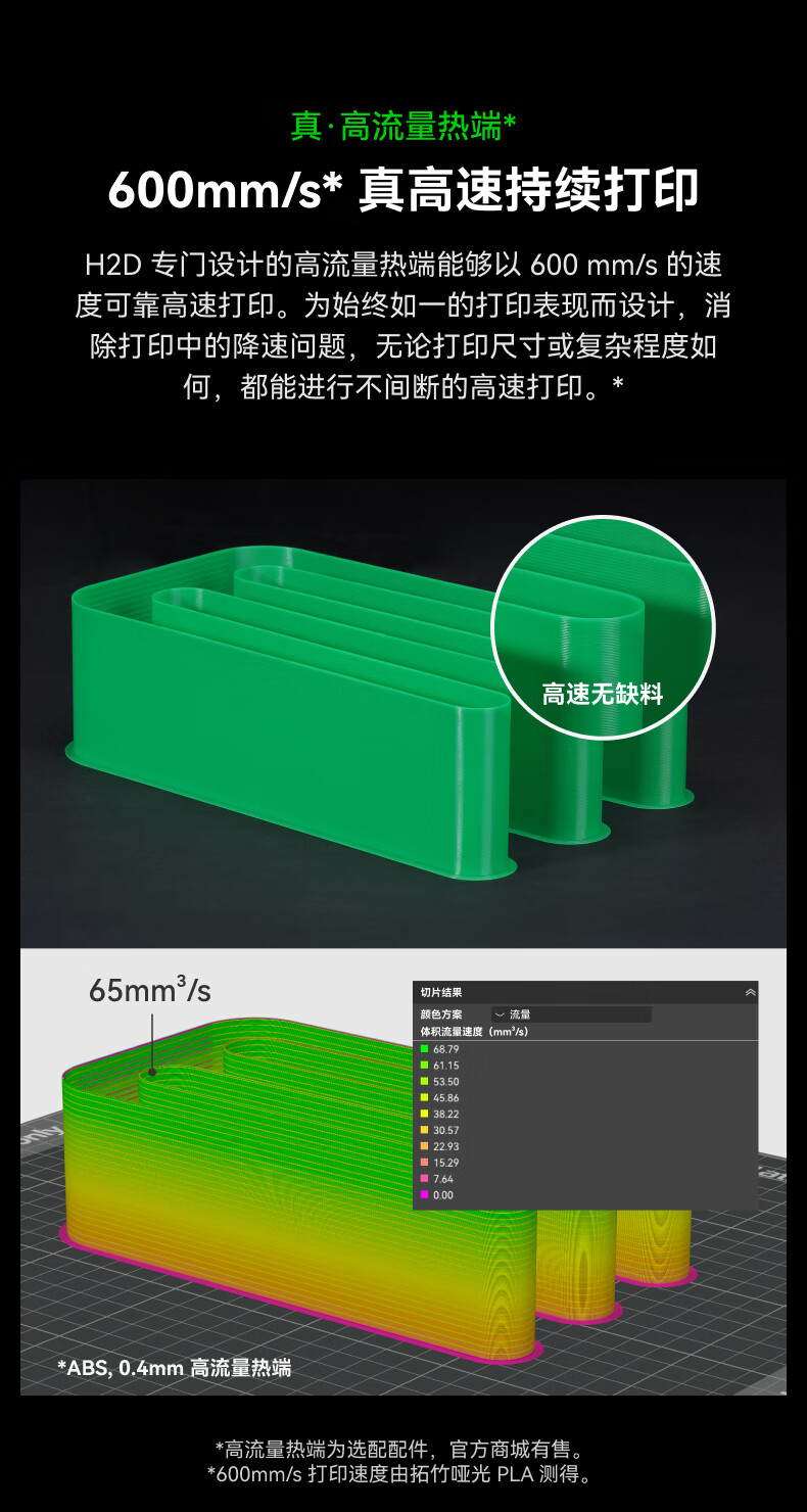 商品名称: 拓竹H2D 3D打印机器高精度大尺寸高速智能多色家用旗舰新品 非激光版本【大陆版】 H2D/台