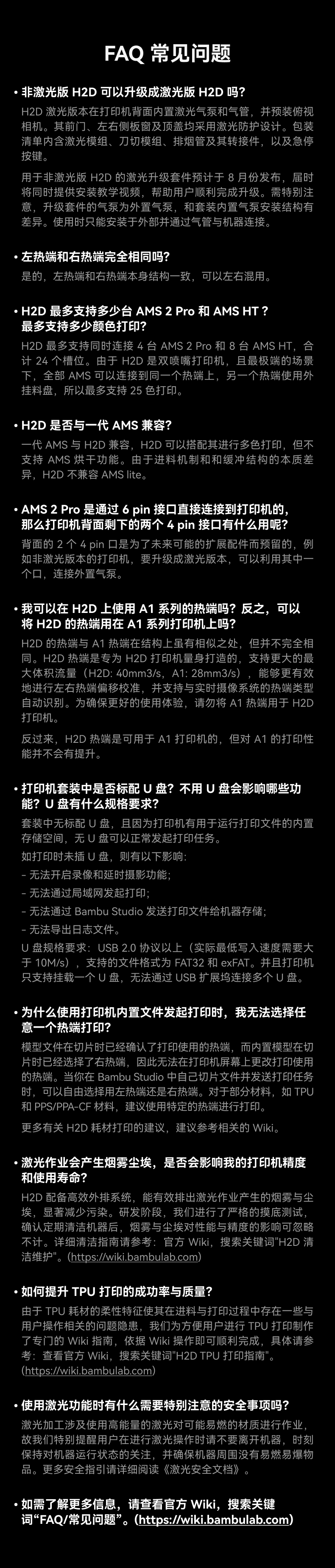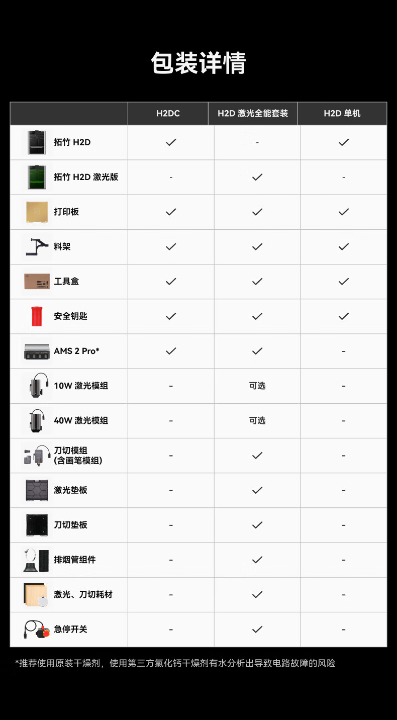 包装清单: 机器显示屏,H2D打印机,打印板,工具盒,料架,安全钥匙等。详情可咨询客服或查询官方wiki。