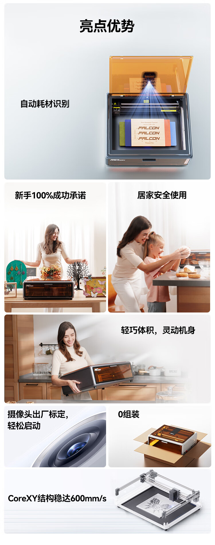 创想三维A1 激光雕刻机 小型手持打标打码刻字机摆摊全自动3d打印机 Falcon A1/台