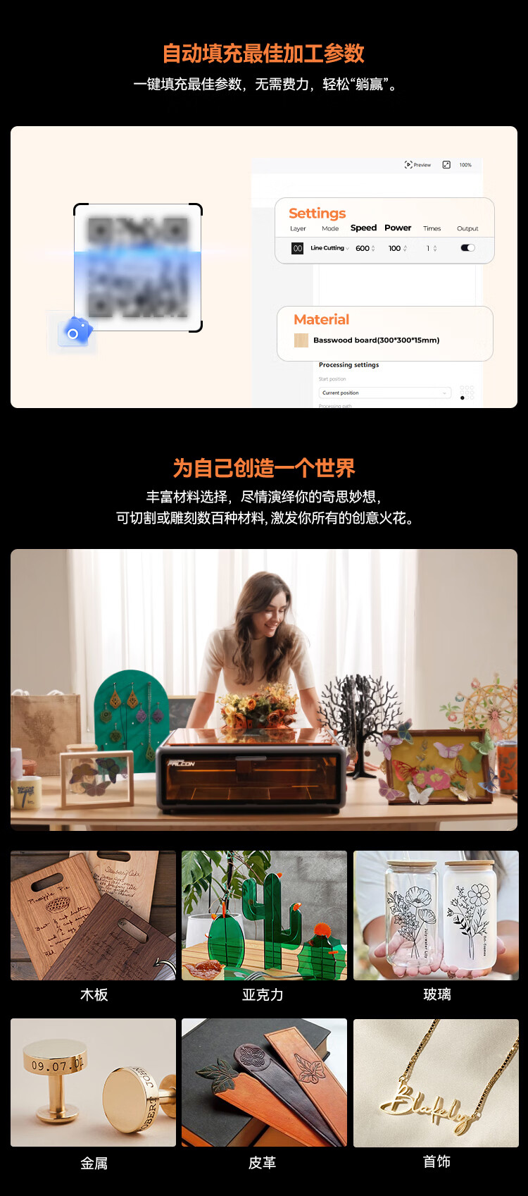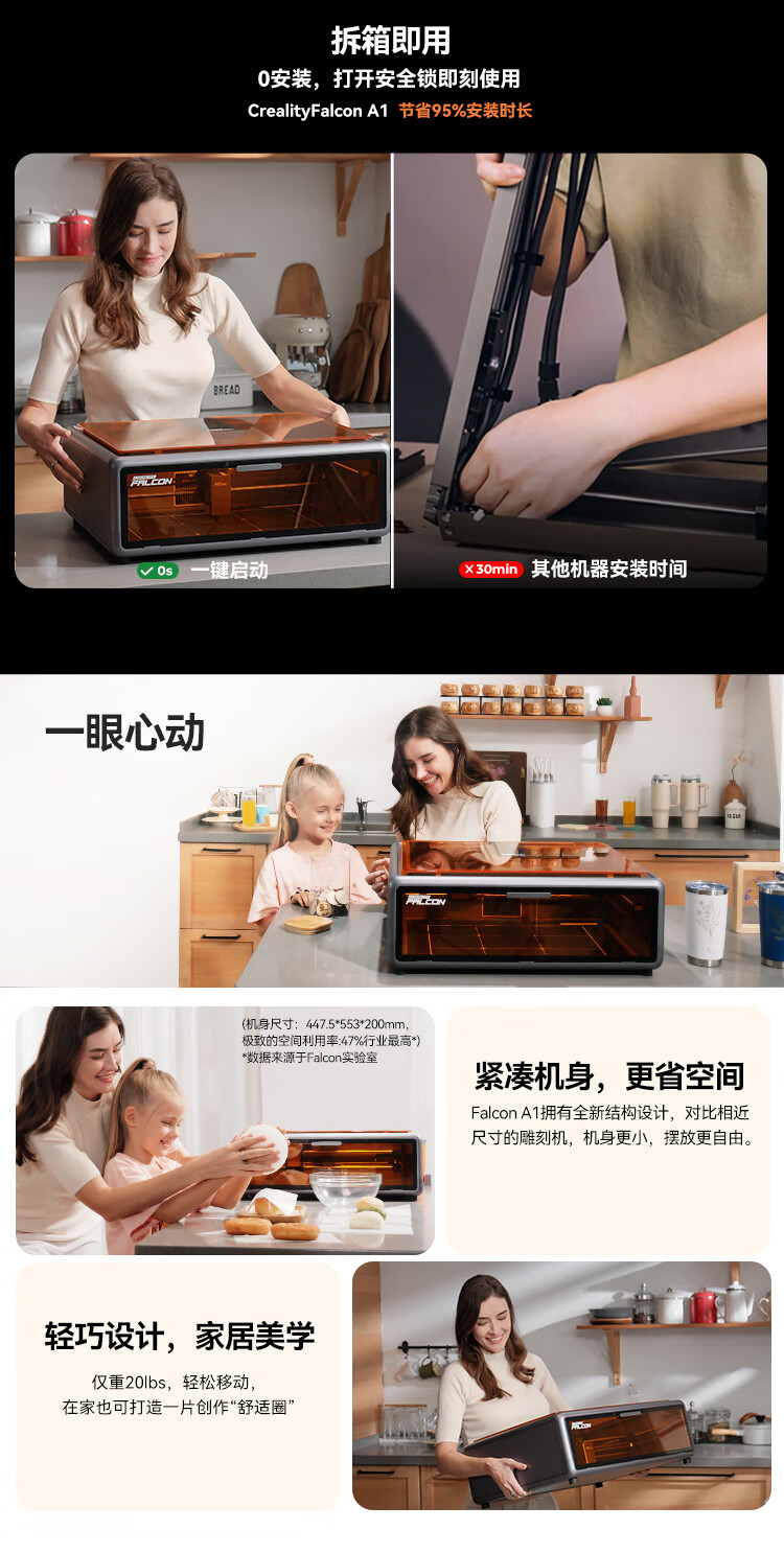 • 商品名称:创想三维A1 激光雕刻机 小型手持打标打码刻字机摆摊全自动3d打印机 Falcon A1/台