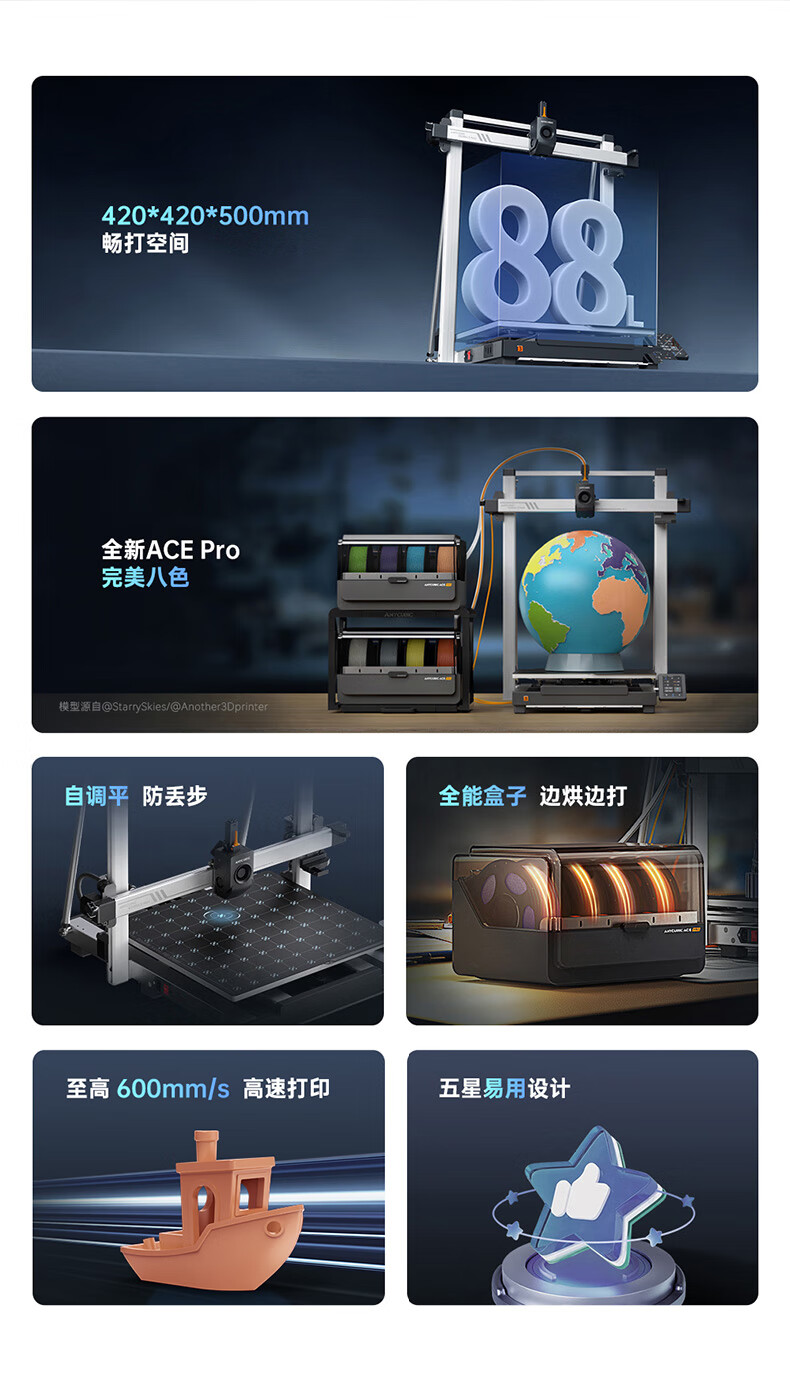 商品名称: ANYCUBIC纵维立方K3MC超大尺寸多色3d立体打印机K3max全自动调平高速FDM桌面级家用高精度模型 K3MC/件