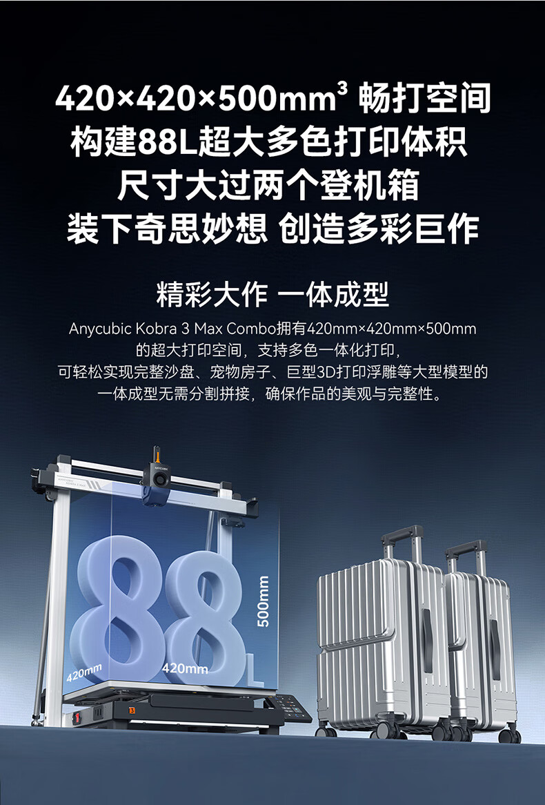 ANYCUBIC纵维立方K3MC超大尺寸多色3d立体打印机K3max全自动调平高速FDM桌面级家用高精度模型 K3MC/件