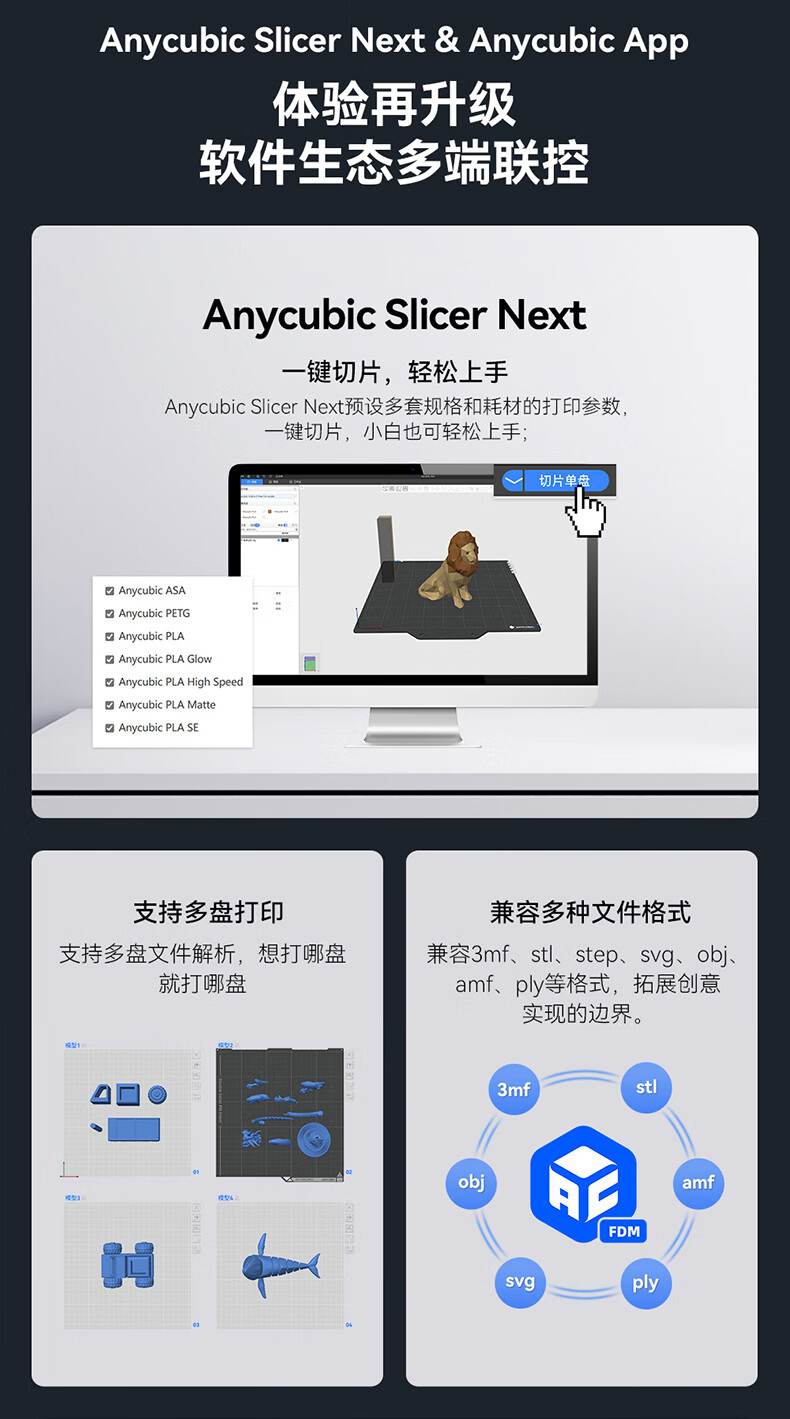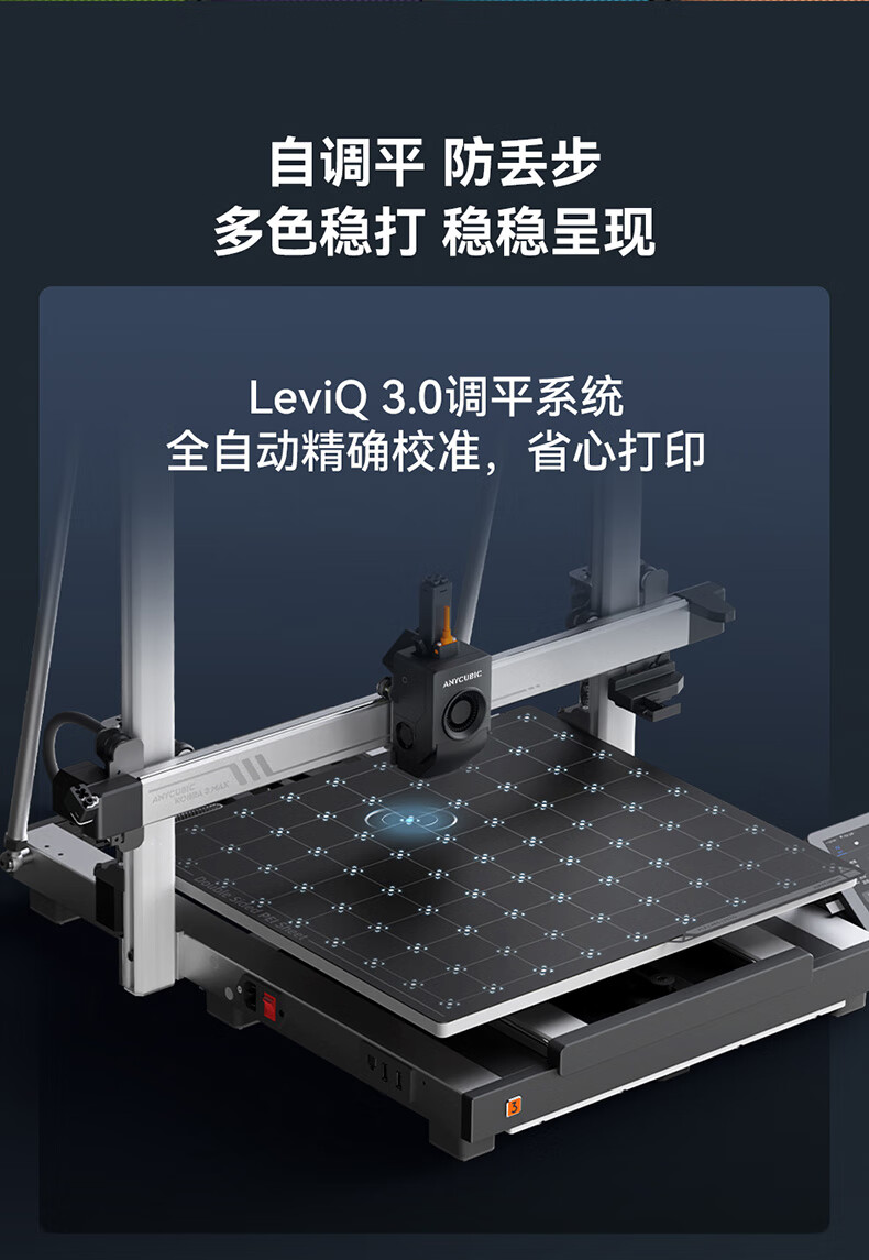 • 商品名称:ANYCUBIC纵维立方K3MC超大尺寸多色3d立体打印机K3max全自动调平高速FDM桌面级家用高精度模型 K3MC/件