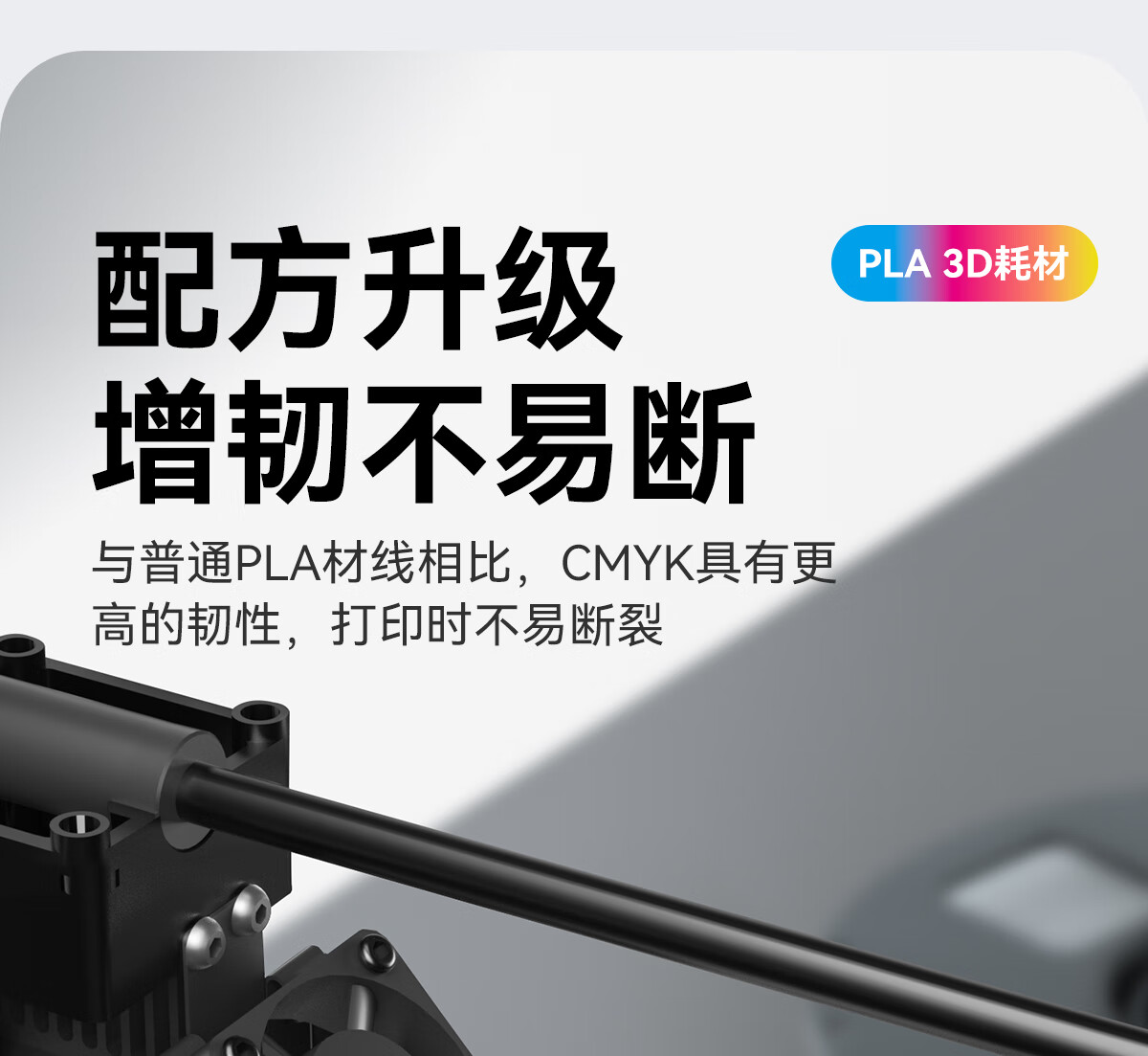 • 商品名称:CMYKSUPPLIES 适用拓竹A1 3D打印耗材PLA基础色 高韧性易打印耗材家用多色高速机器BambuLab黄色1kg 3D打印耗材 PLA 1.75mm/卷