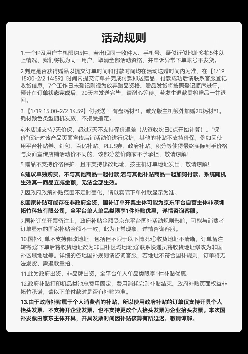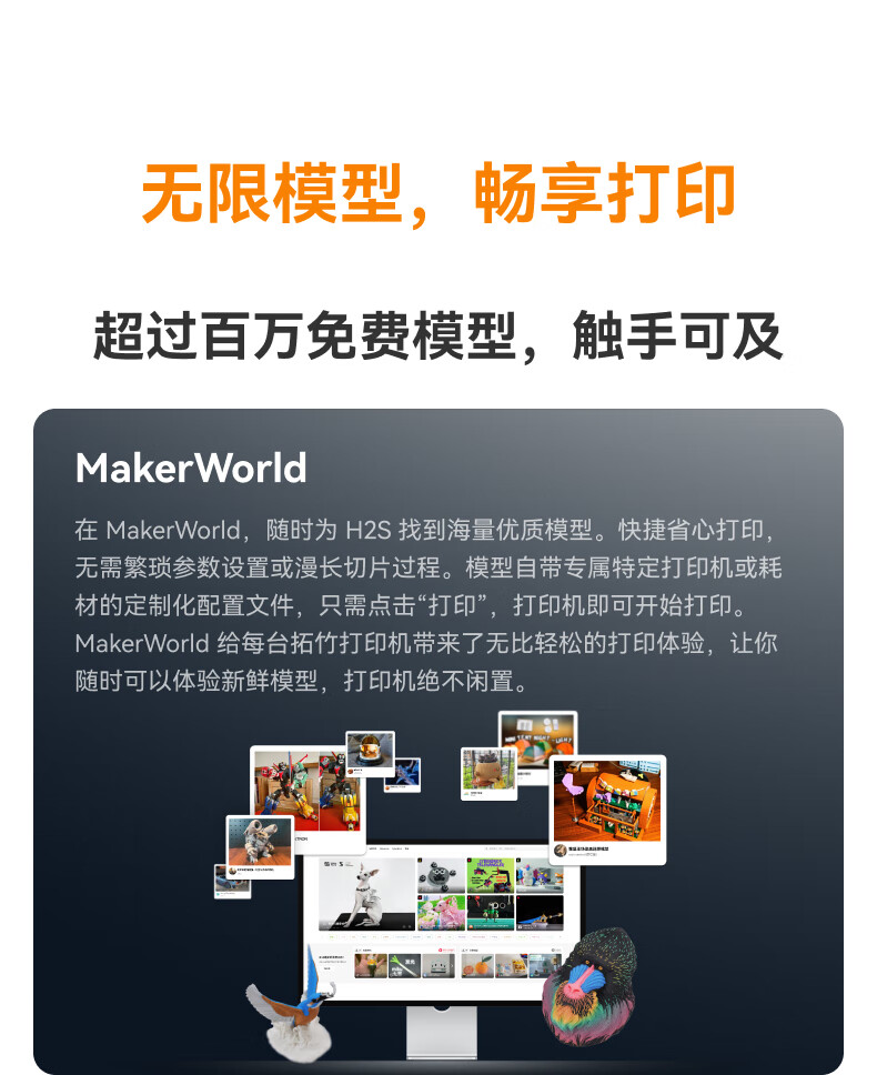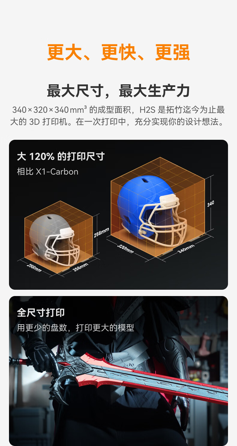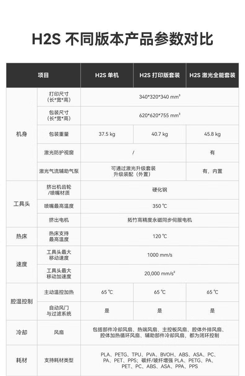• 商品名称:拓竹H2SC 多色套装3D打印机器大尺寸 高精度高速智能多色新品【大陆版】 H2SC/台