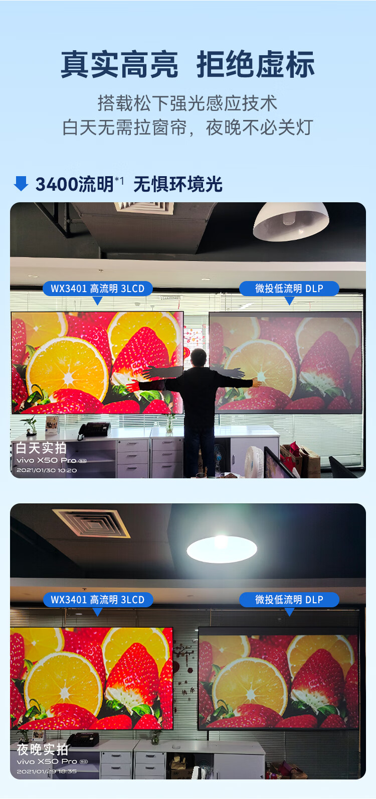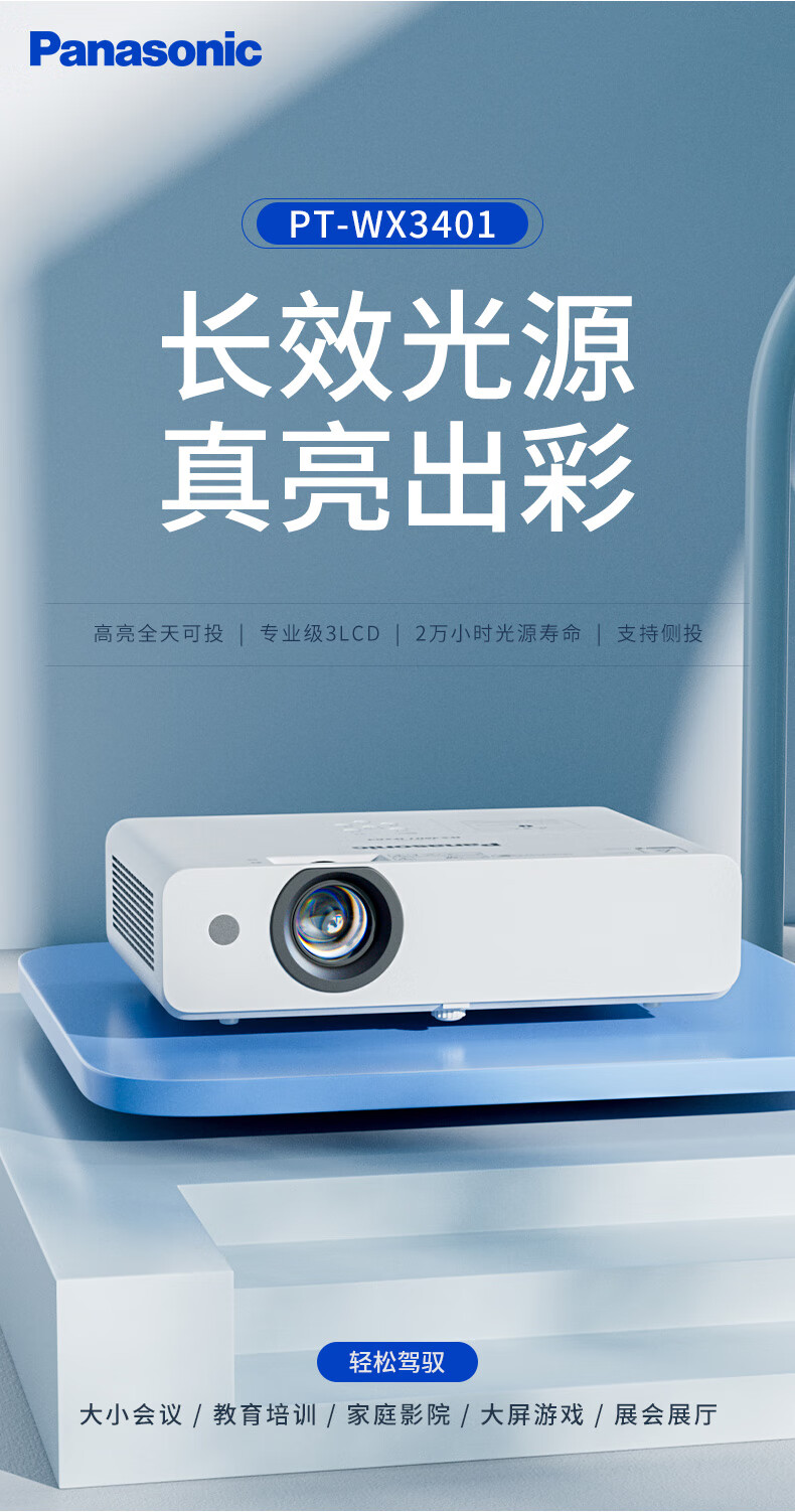 • 商品名称:松下(Panasonic)PT-WX3401投影仪办公室白天会议专用 投影机家用家庭影院 会议商用 (3400高流明 3LCD ) PT-WX3401/台