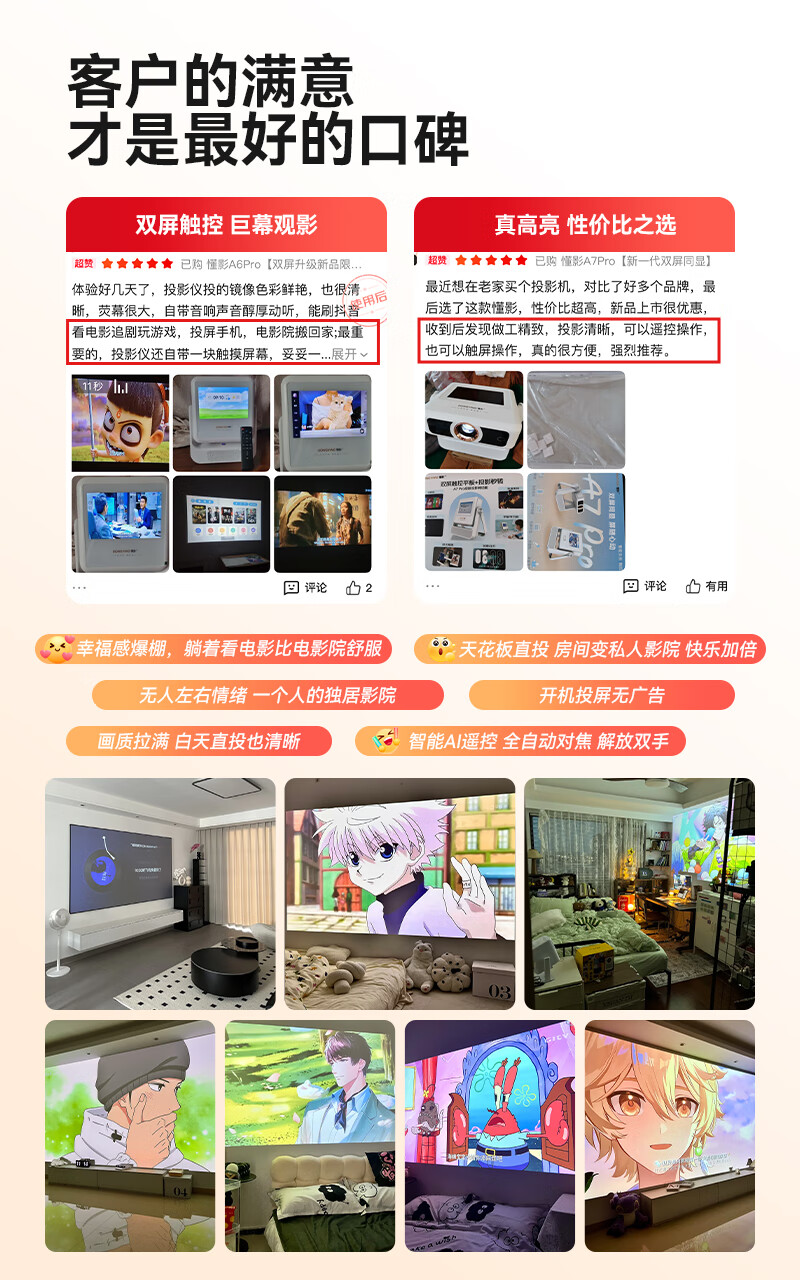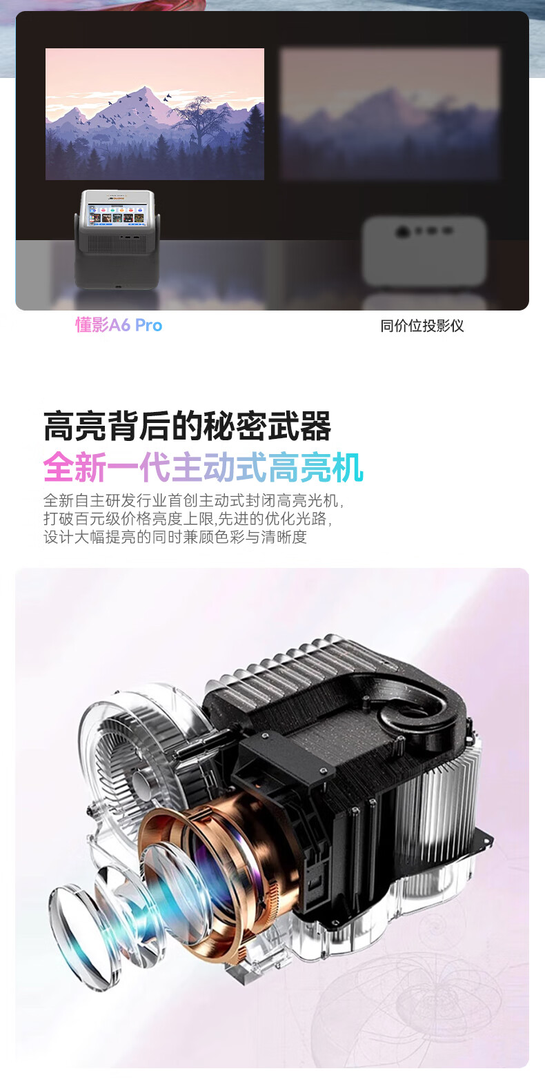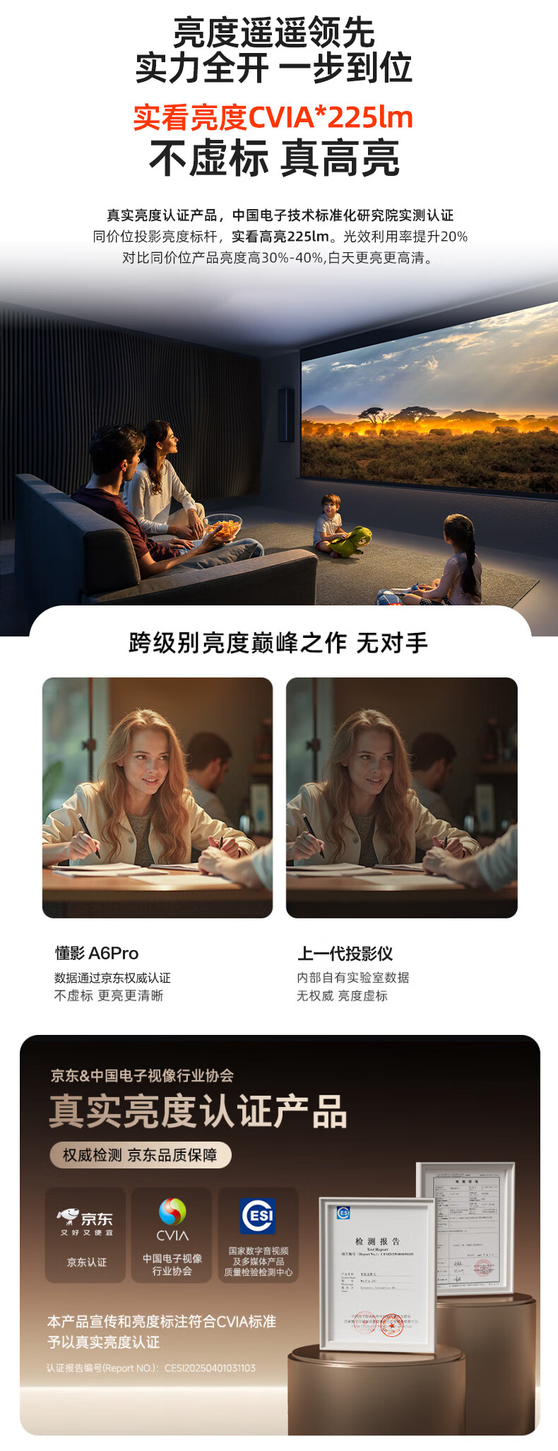 • 商品名称:懂影A6Pro全新升级 全密闭直投机 双屏触控家用投影仪 高清大屏家庭影院学生宿舍一体式云台 自动对焦 A6Pro/台