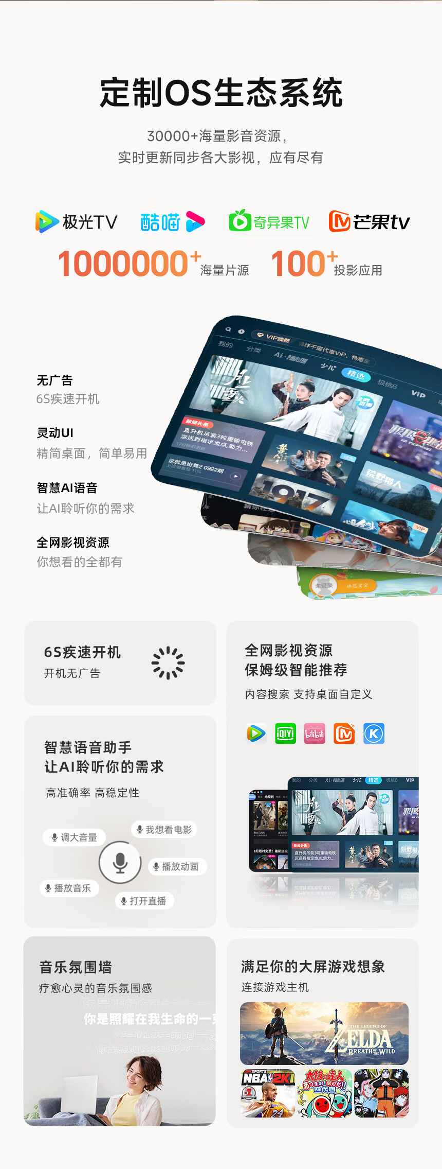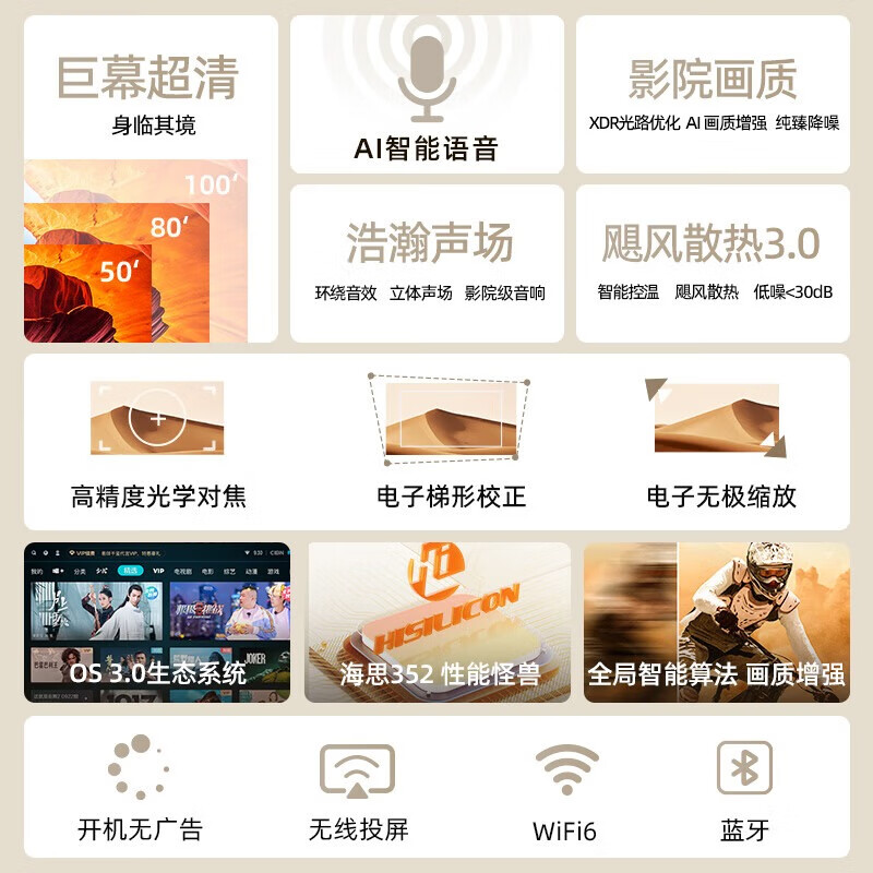 包装清单: 投影机*1、语音遥控器*1/说明书/保修卡/合格证