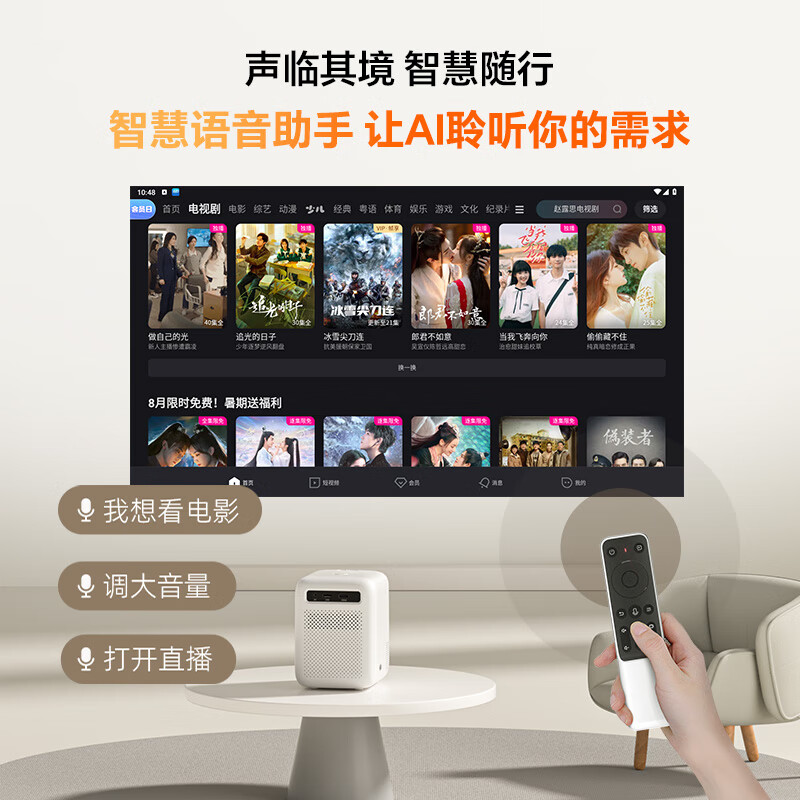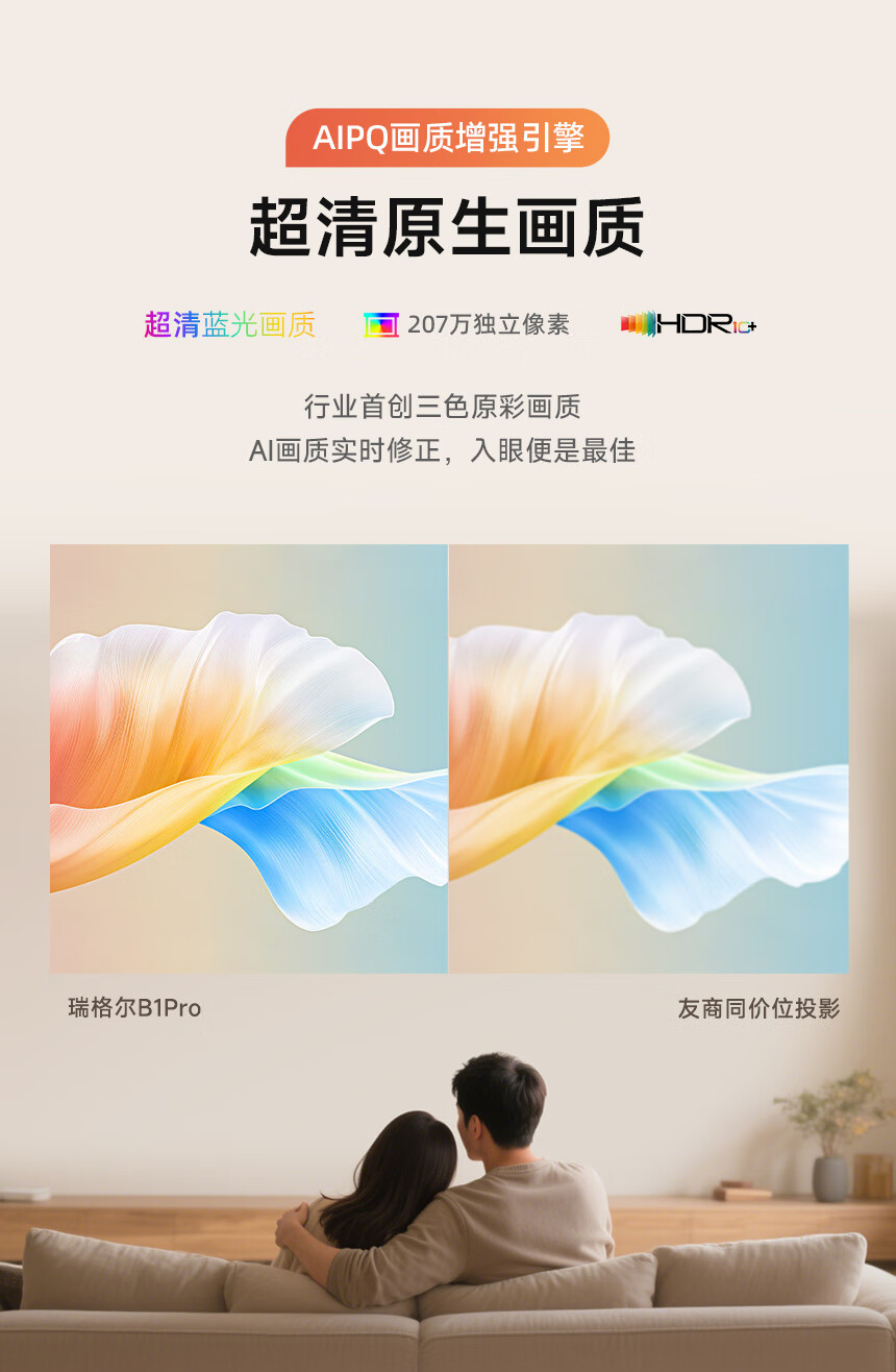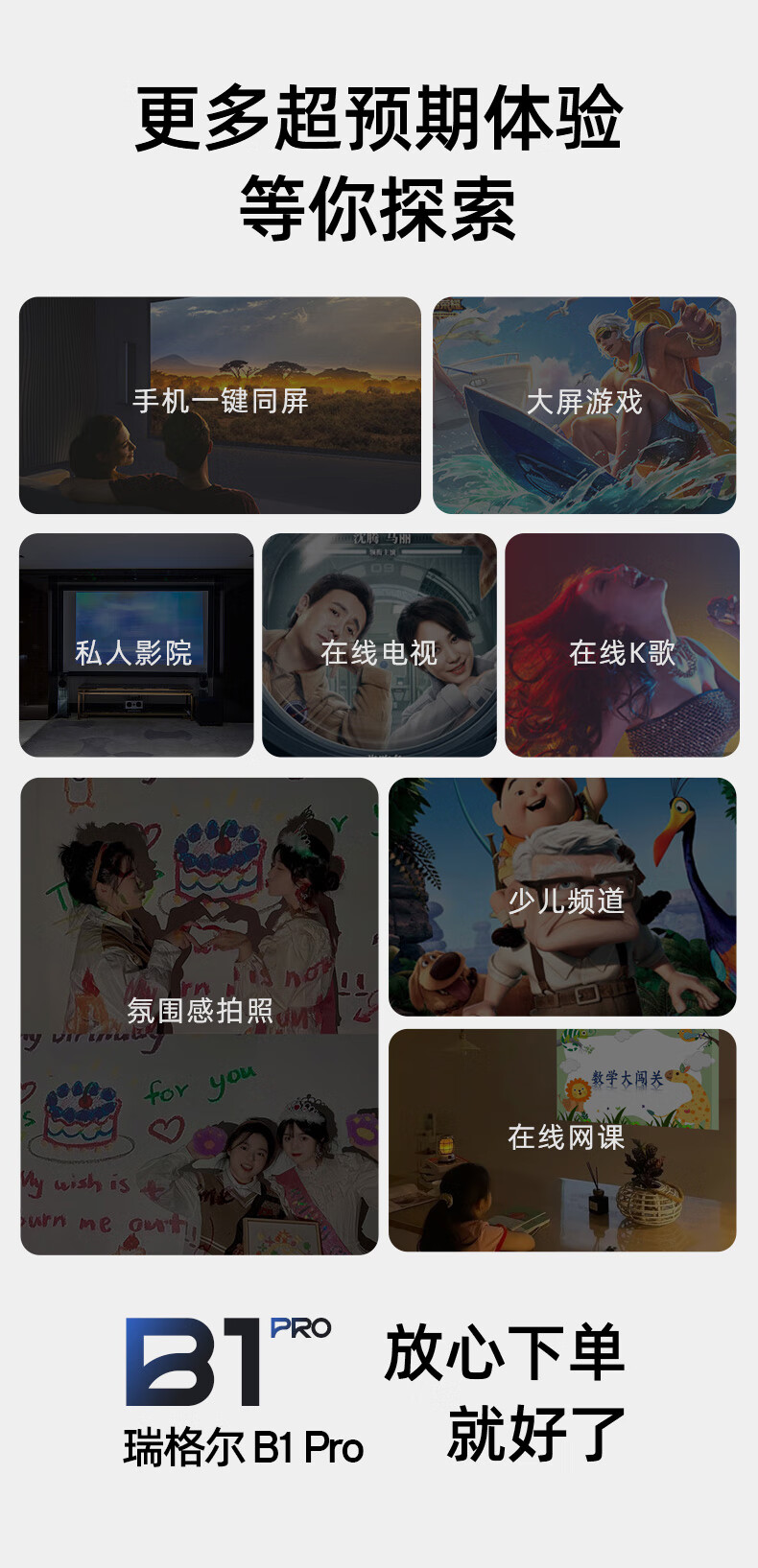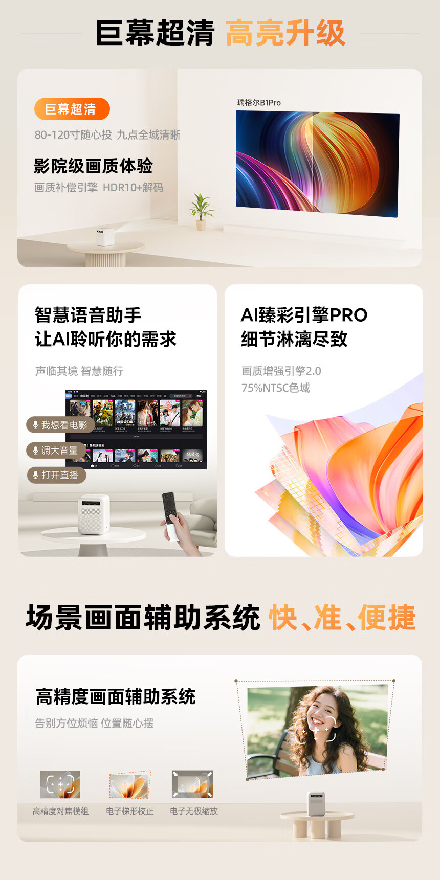 商品名称: Rigal(瑞格尔)B1Pro 投影仪家用智能便携投影机卧室手机投影电视(兼容1080P 电子梯形校正 AI语音) E11/台