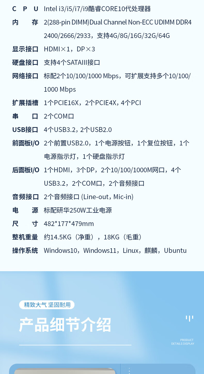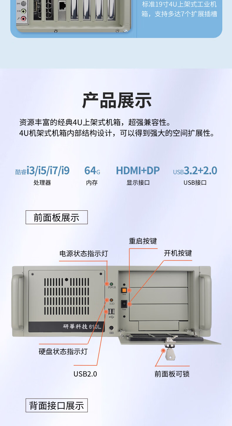 • 商品名称:众研研华IPC-610L 原装工控机 自动化 运动控制【 酷睿十代】上位机 i7-10700/32G/500固/2T/3060独显 IPC-610L/台