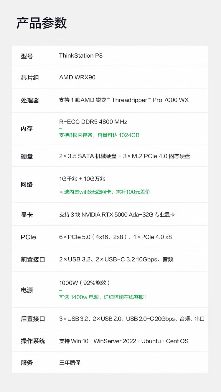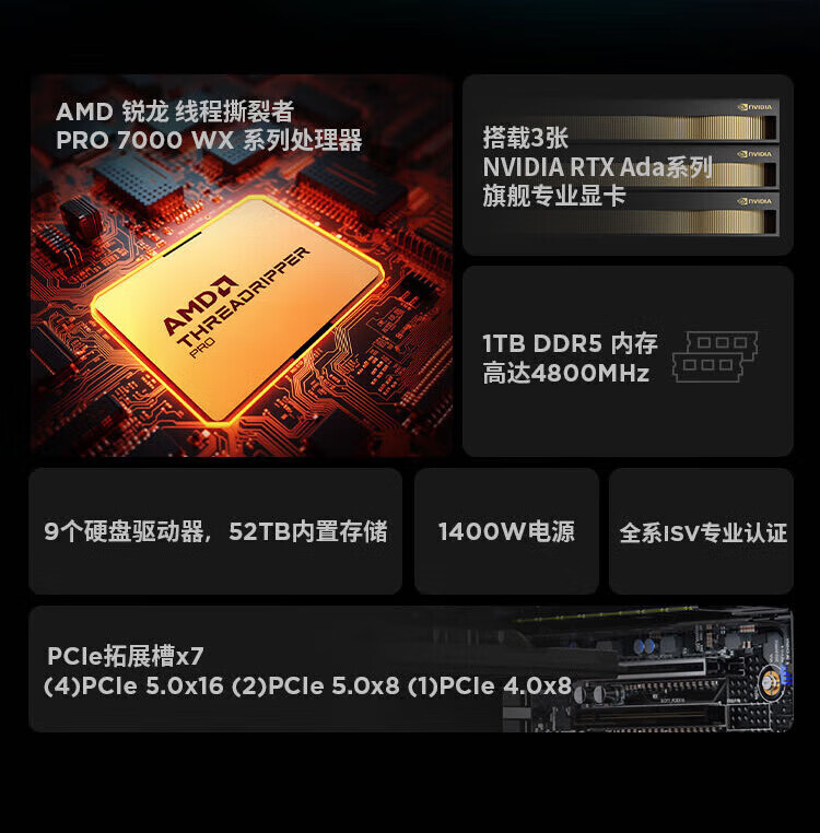 电脑、办公  > 电脑整机  > 工作站  >  联想/ThinkBook  >  联想【图形工作站】【P8】AMD模拟仿真深度计算定制7995WX 丨512G丨2T固态+16T丨RTX 6000Ada*2 P8/台