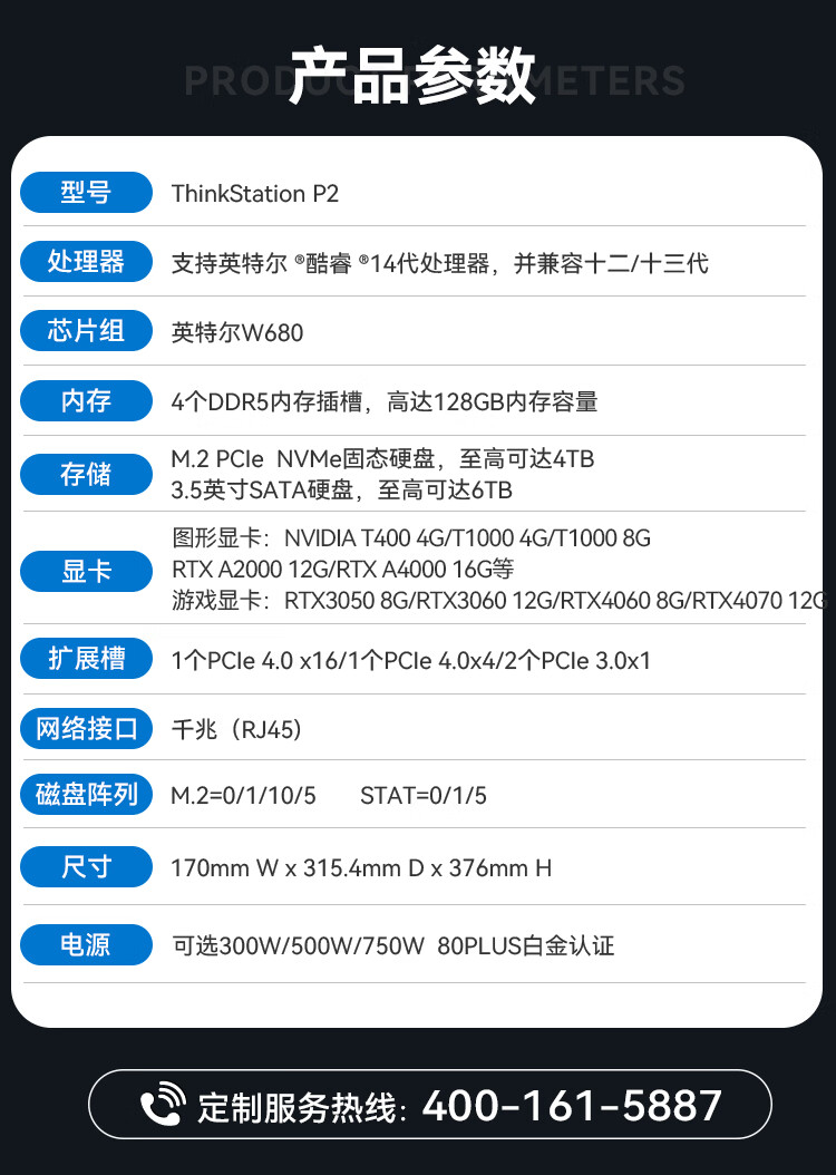 商品名称: 联想(Lenovo)【P2】【图形工作站】 17-14700K丨64G丨512G SSD+2T HDD丨A2000-12G丨750W 图形工作站/台