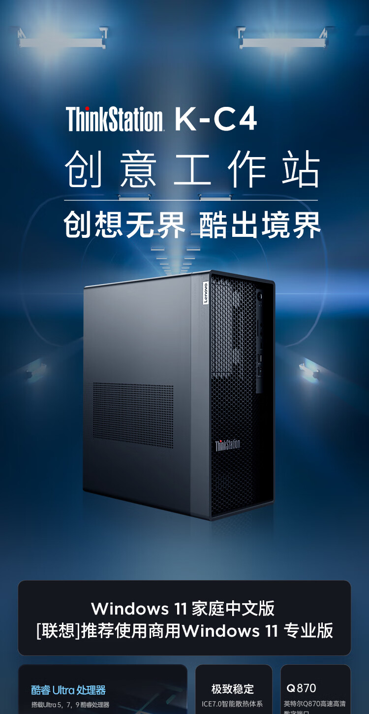 电脑、办公  > 电脑整机  > 工作站  >  联想/ThinkBook  >  联想ThinkStation K-C4图形工作站台式电脑主机 15代Ultra9 285丨32G丨512G固态+2T丨RTX3050-6G ThinkStation/台