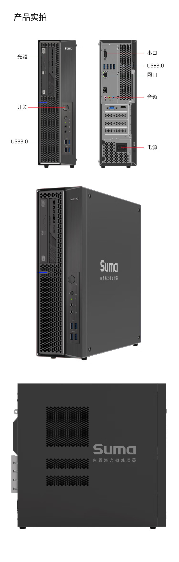 电脑、办公  > 电脑整机  > 工作站  >  Suma  >  Suma中科可控W3335HA1国产信创台式工作站主机(海光3250/8G/256G/2G独显/DVD/180W/23.8英寸) W3335HA2/台
