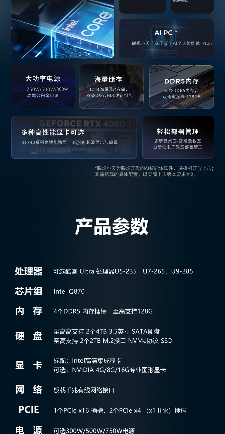 • 商品名称:联想ThinkStation K-C4图形工作站台式电脑主机 15代Ultra9 285丨32G丨512G固态+2T丨RTX3050-6G ThinkStation/台