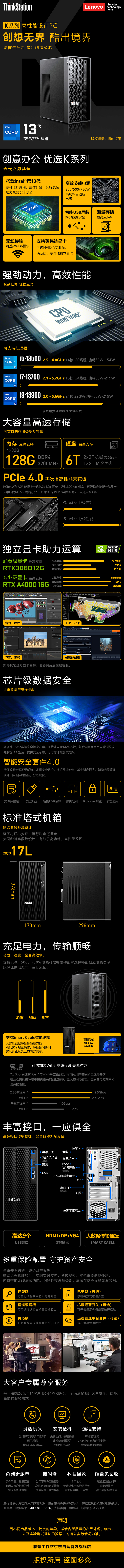 电脑、办公  > 电脑整机  > 工作站  >  联想/ThinkBook  >  联想(Lenovo)【K】商用办公设计师建模台式机【塔式工作站】电脑主机 i7-13700 32G 512G+2T RTX4060 8G 定制 K/台
