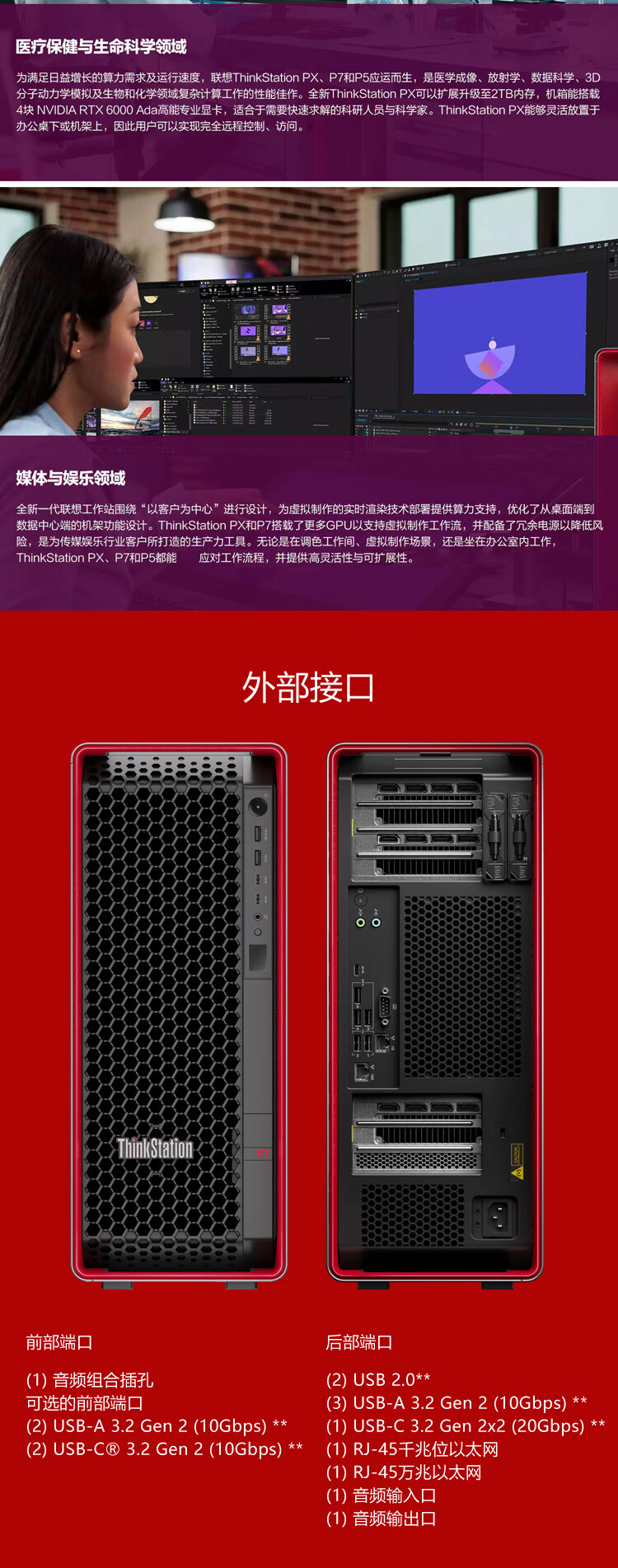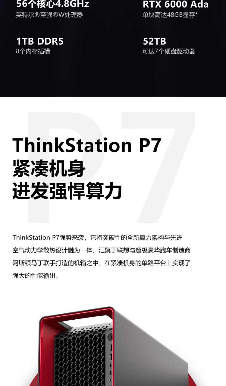 • 商品名称:联想ThinkStation P7深度学习图形工作站台式电脑主机 至强W7-3455丨256G丨2T固态+8T丨RTX4000Ada-20G ThinkStation/台