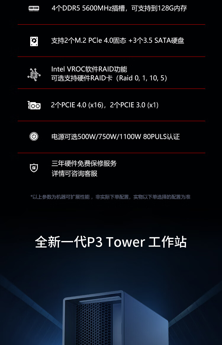 • 商品名称:联想ThinkStation P3图形工作站台式电脑主机 14代i9-14900K丨128G丨2T固态+4T丨RTX5060Ti-16G ThinkStation/台