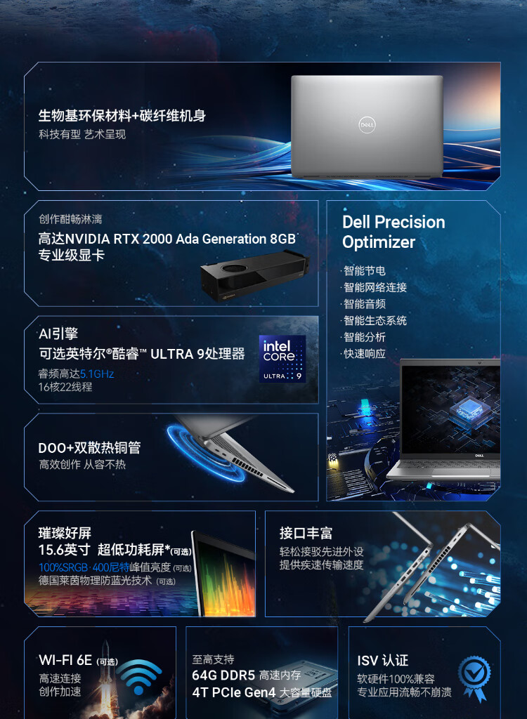 • 商品名称:戴尔(DELL)Precision 3591 移动工作站Ultra 9-185H/32G/1T+1T/RTX2000 Ada/Win10 pro/定制- 戴尔Precision移动工作站/台