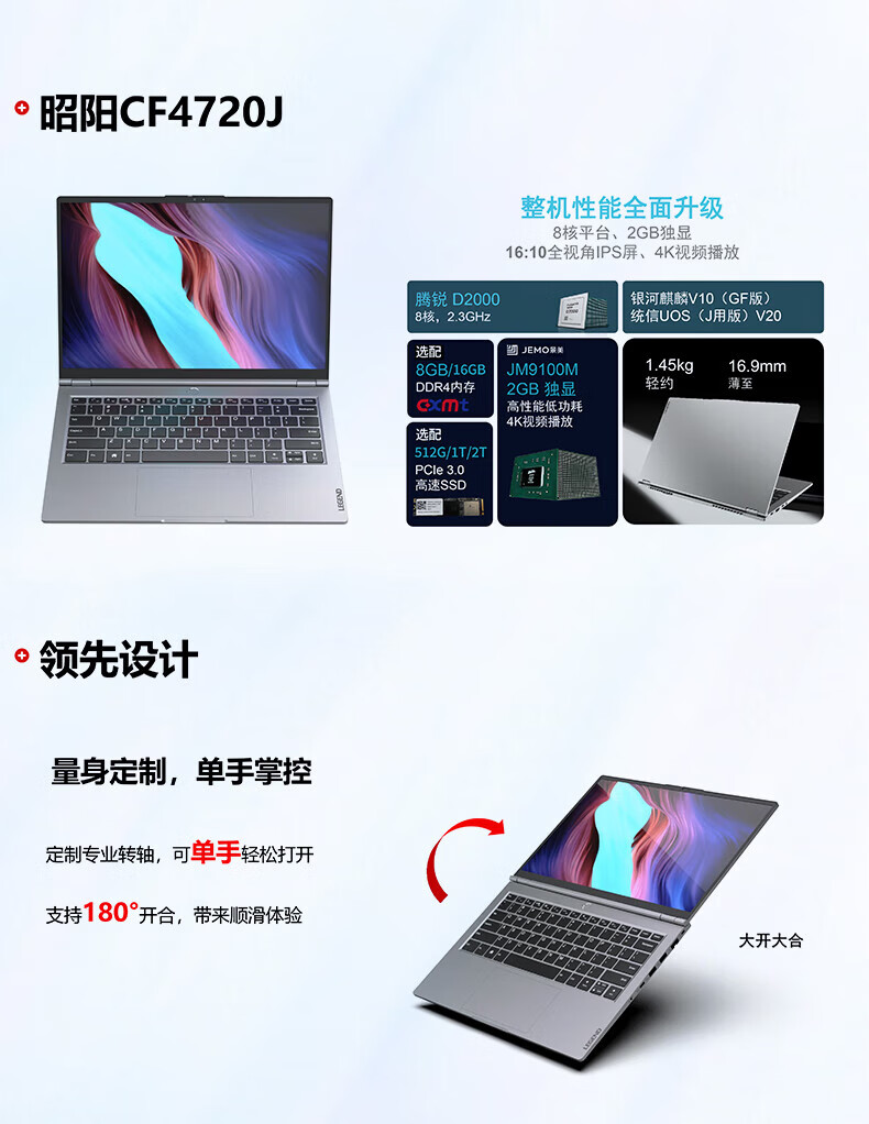 • 商品名称:LenovoLenovo昭阳CF4720J笔记本飞腾D2000 16G/512G /2G独显麒麟试用 联想/台