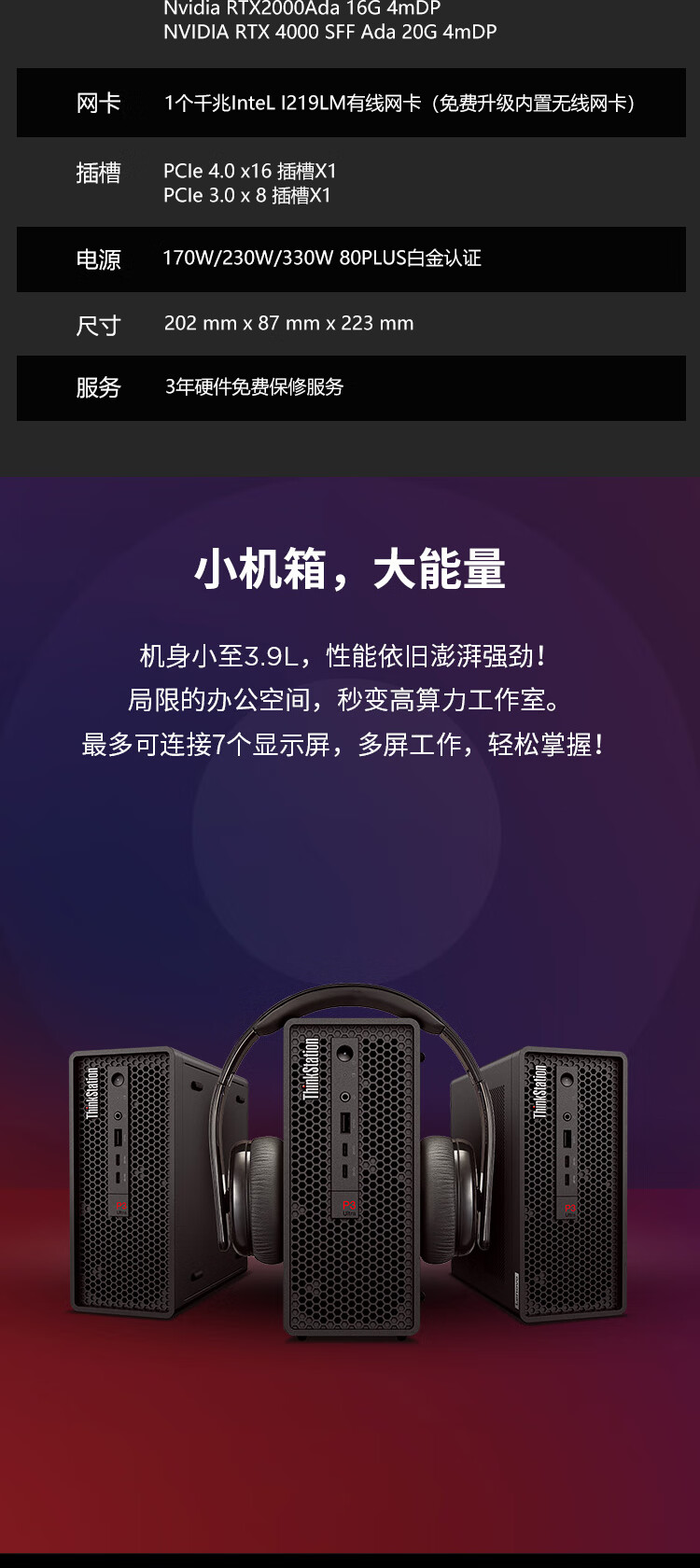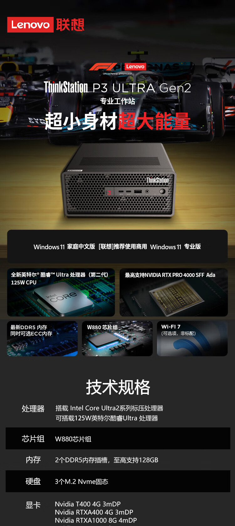 商品名称: 联想(Lenovo)ThinkStation P3 Ultra Gen2小型迷你图形工作站台式电脑主机 15代U5 235丨32G内存丨1T固态丨集显 ThinkStation/台
