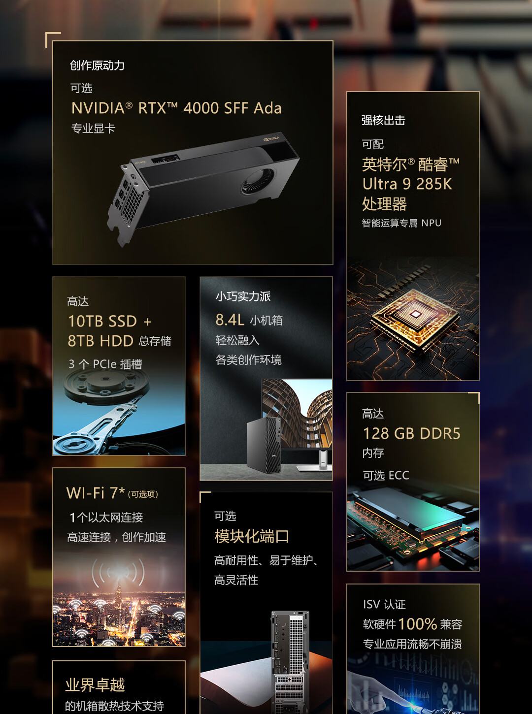 • 商品名称:戴尔(DELL)Pro Max Slim FCS1250小型图形工作站台式电脑主机 15代U7 265丨96G丨4T固态丨RTX2000Ada-16G Precision/台
