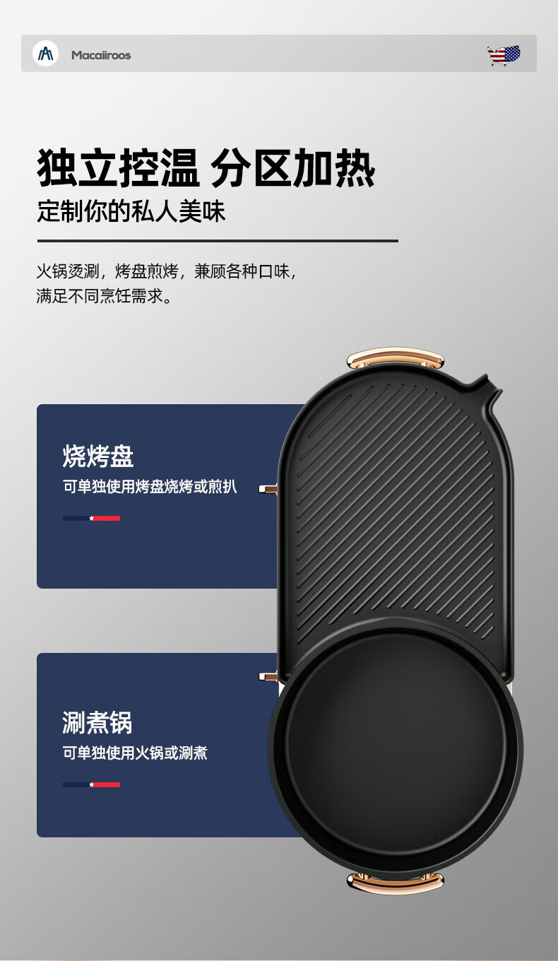 家用电器  > 厨房小电  > 多功能锅  >  迈卡罗/Macaiiroos  >  迈卡罗迈卡罗多功能分体式涮烤一体机MC-KK301 MC-KK301/台