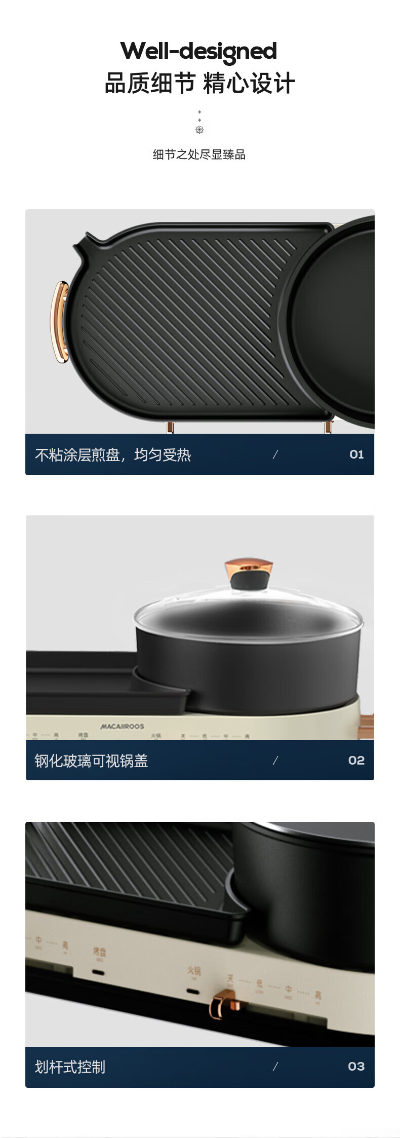 包装清单: 迈卡罗MACAIIROOS多功能分体式涮烤一体机MC-KK301 *1
