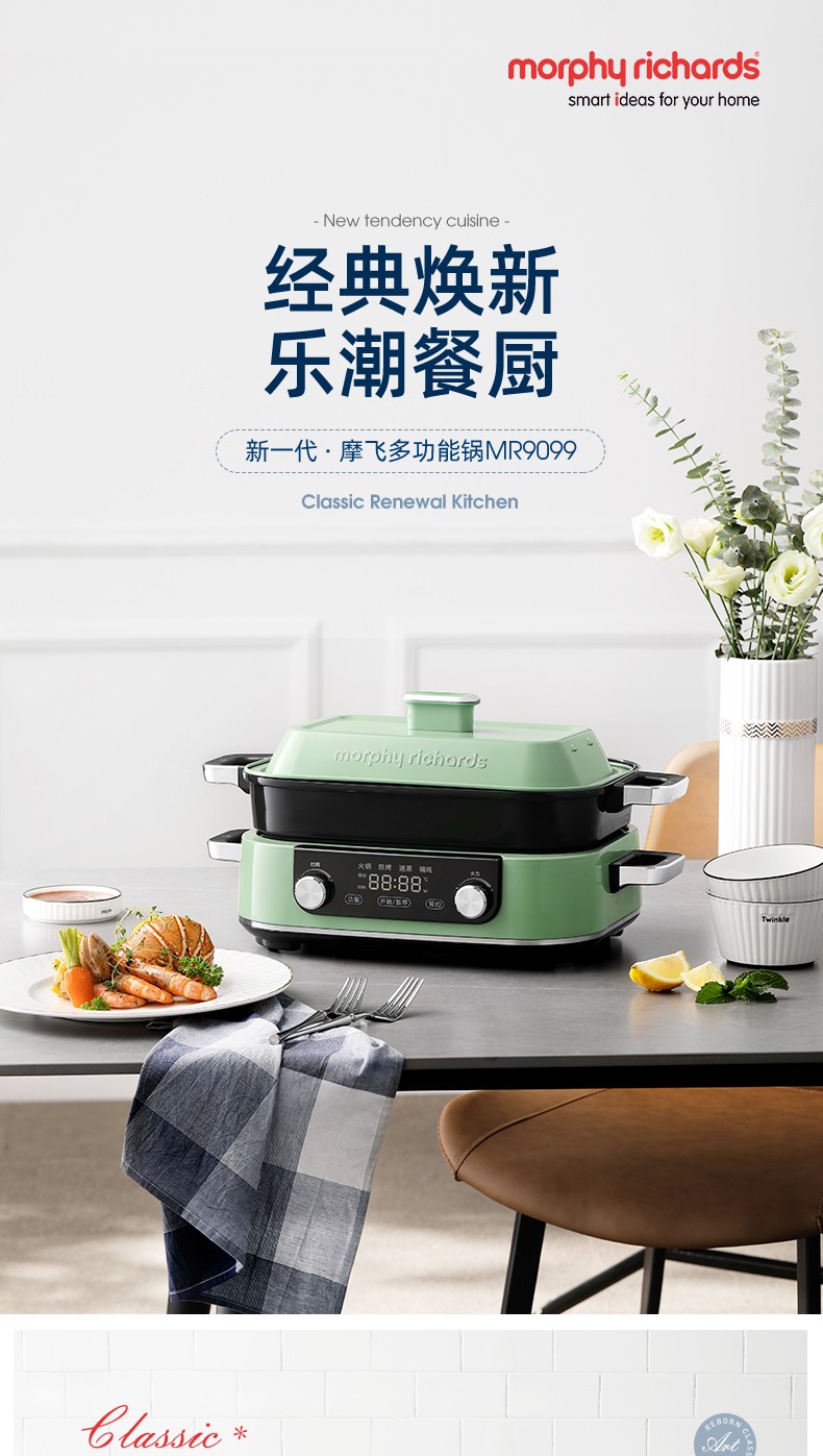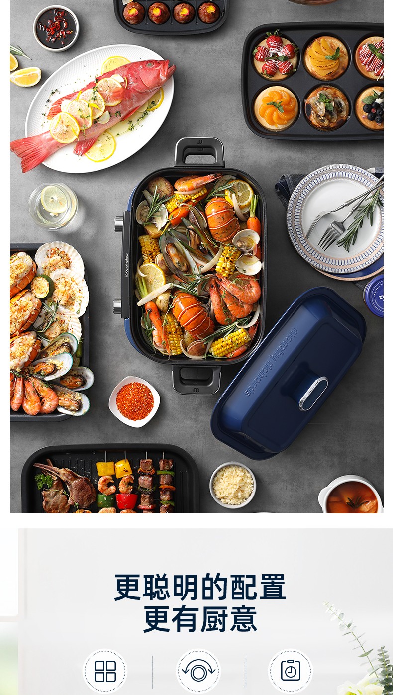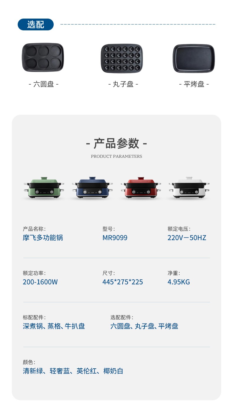 • 商品名称:摩飞电器(Morphyrichards)二代多用途锅电火锅烤肉锅 涮蒸煮炒煎烤一体电炒锅电煮锅大容量网红锅 MR9099 多功能锅 椰奶白 MR9099/台