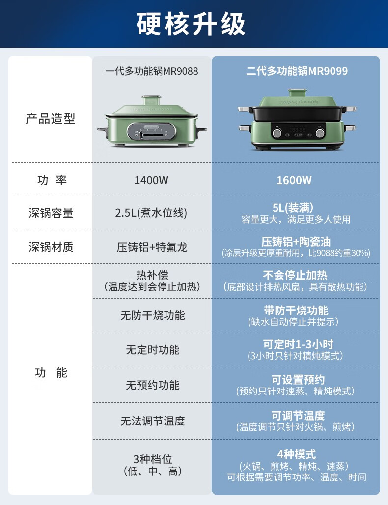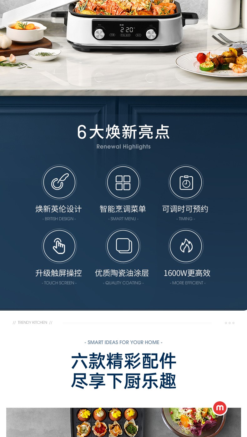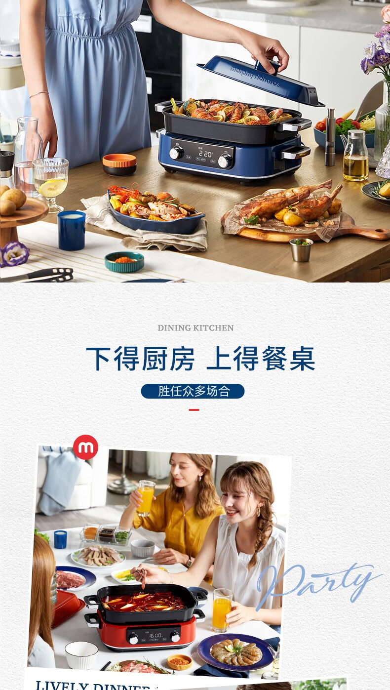 • 商品名称:摩飞电器(Morphyrichards)二代多用途锅电火锅烤肉锅 涮蒸煮炒煎烤一体电炒锅电煮锅大容量网红锅 MR9099 多功能锅 椰奶白 MR9099/台