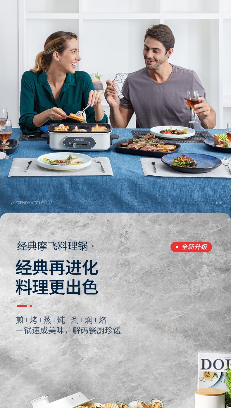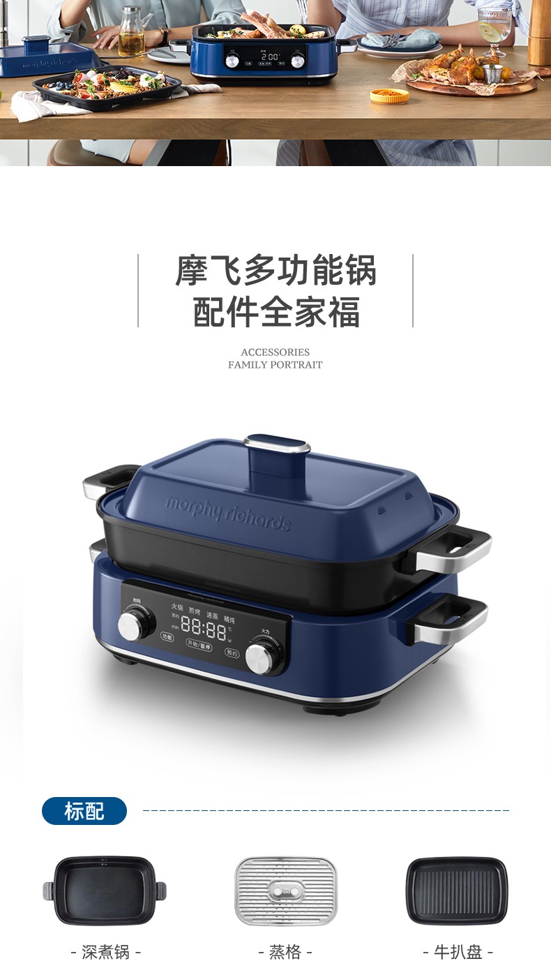 家用电器  > 厨房小电  > 多功能锅  >  morphyrichards  >  摩飞电器(Morphyrichards)二代多用途锅电火锅烤肉锅 涮蒸煮炒煎烤一体电炒锅电煮锅大容量网红锅 MR9099 多功能锅 椰奶白 MR9099/台