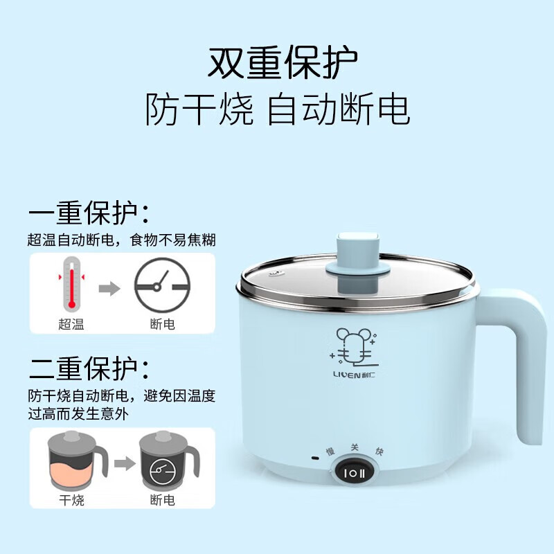 利仁(Liven)电煮锅1L小电锅多功能炒煮电热锅迷你电热杯学生宿舍锅煮面电火锅LPHG-5 1.3L LPHG-5/个