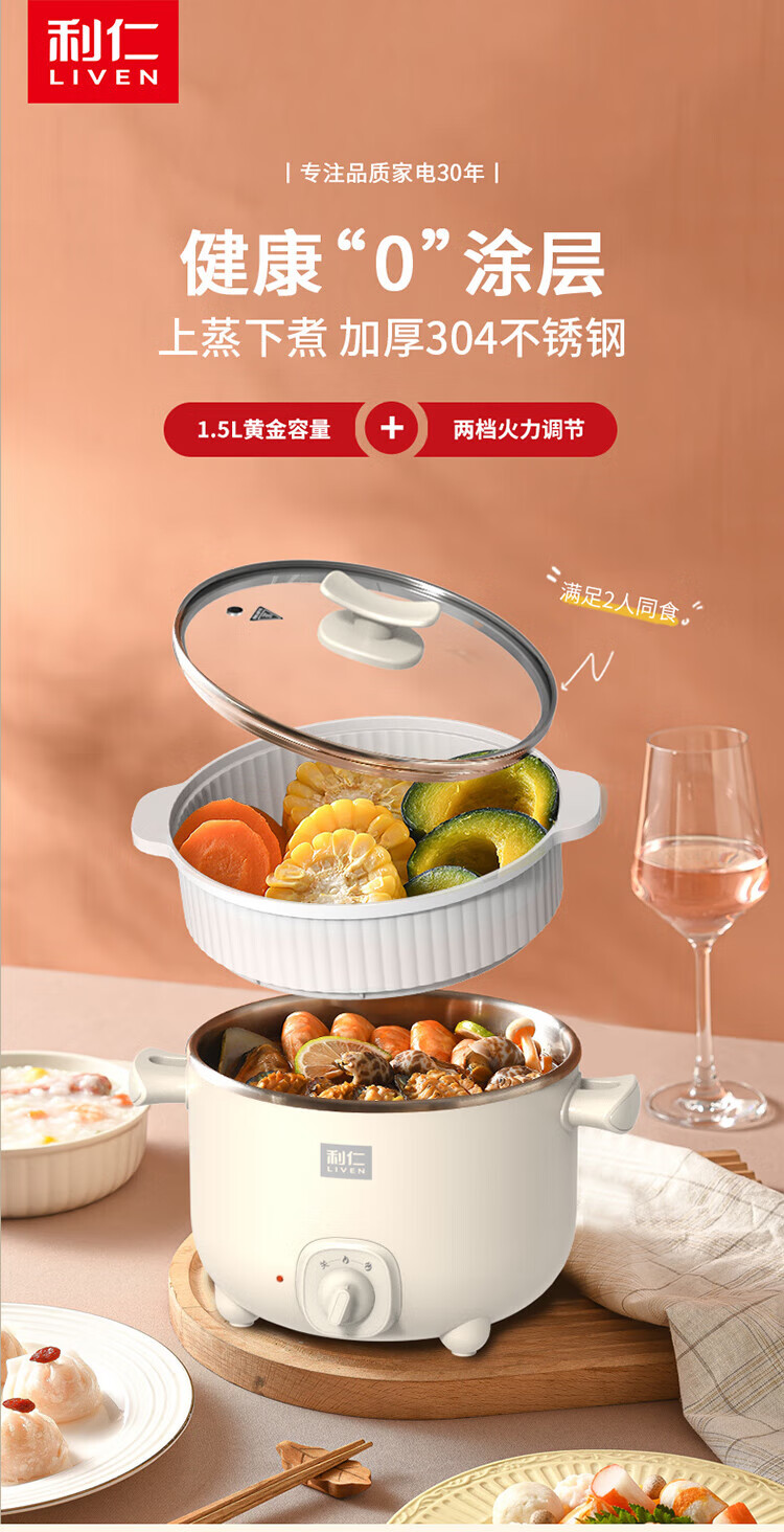 家用电器  > 厨房小电  > 多功能锅  >  利仁/liven  >  利仁(Liven)电煮锅1L小电锅多功能炒煮电热锅迷你电热杯学生宿舍锅煮面电火锅LPHG-5 1.3L LPHG-5/个