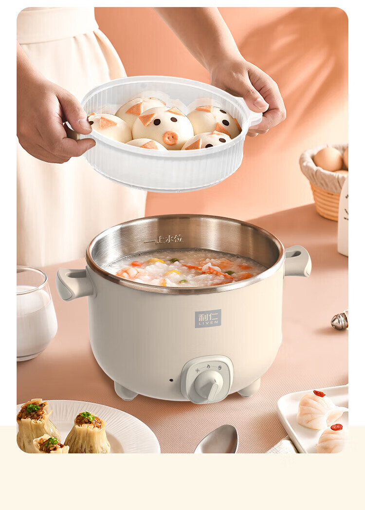 • 商品名称:利仁(Liven)电煮锅1L小电锅多功能炒煮电热锅迷你电热杯学生宿舍锅煮面电火锅LPHG-5 1.3L LPHG-5/个