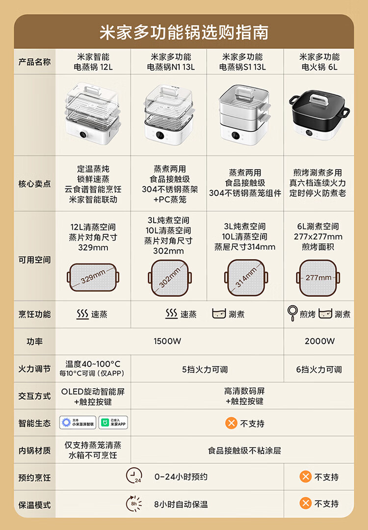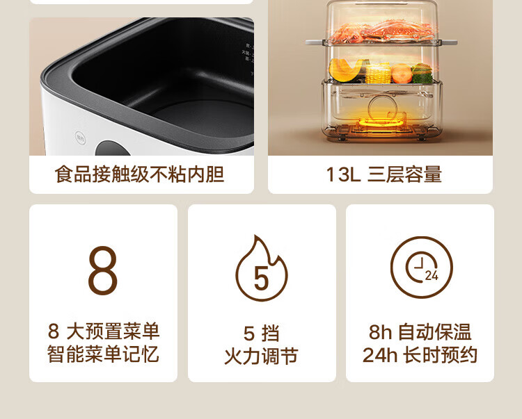 家用电器  > 厨房小电  > 多功能锅  >  小米/MI  >  小米(MI)米家电蒸锅N1 13L 家用电煮锅电火锅多功能锅 炖蒸煮涮一体锅 不粘锅内胆 304不锈钢 三层大容量 MES02/台