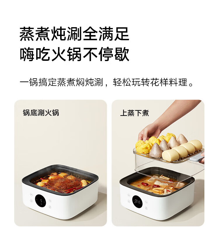 • 商品名称:小米(MI)米家电蒸锅N1 13L 家用电煮锅电火锅多功能锅 炖蒸煮涮一体锅 不粘锅内胆 304不锈钢 三层大容量 MES02/台