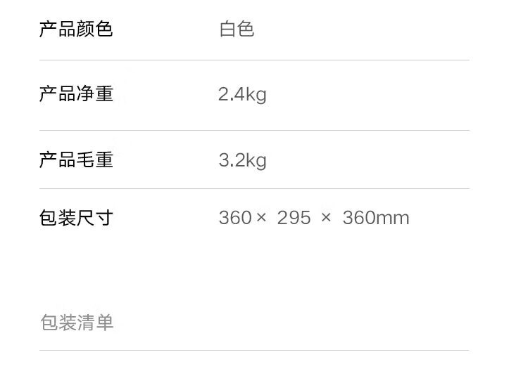 包装清单: 主机、电源线、说明书、提示卡、柠檬酸