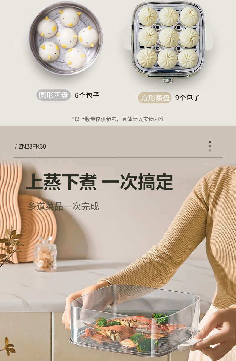 苏泊尔电蒸锅电煮锅电火锅家用电锅蒸包子锅电热锅三层大容量多用途锅多功能锅ZN23FK30 ZN23FK30/个