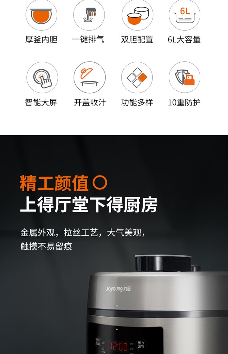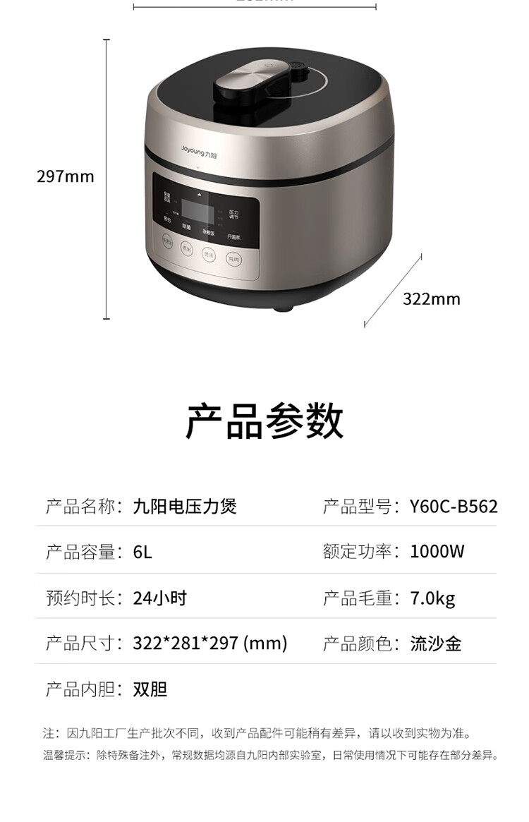 商品名称: 九阳电压力煲(双胆)Y60C-B562 Y60C-B562/台