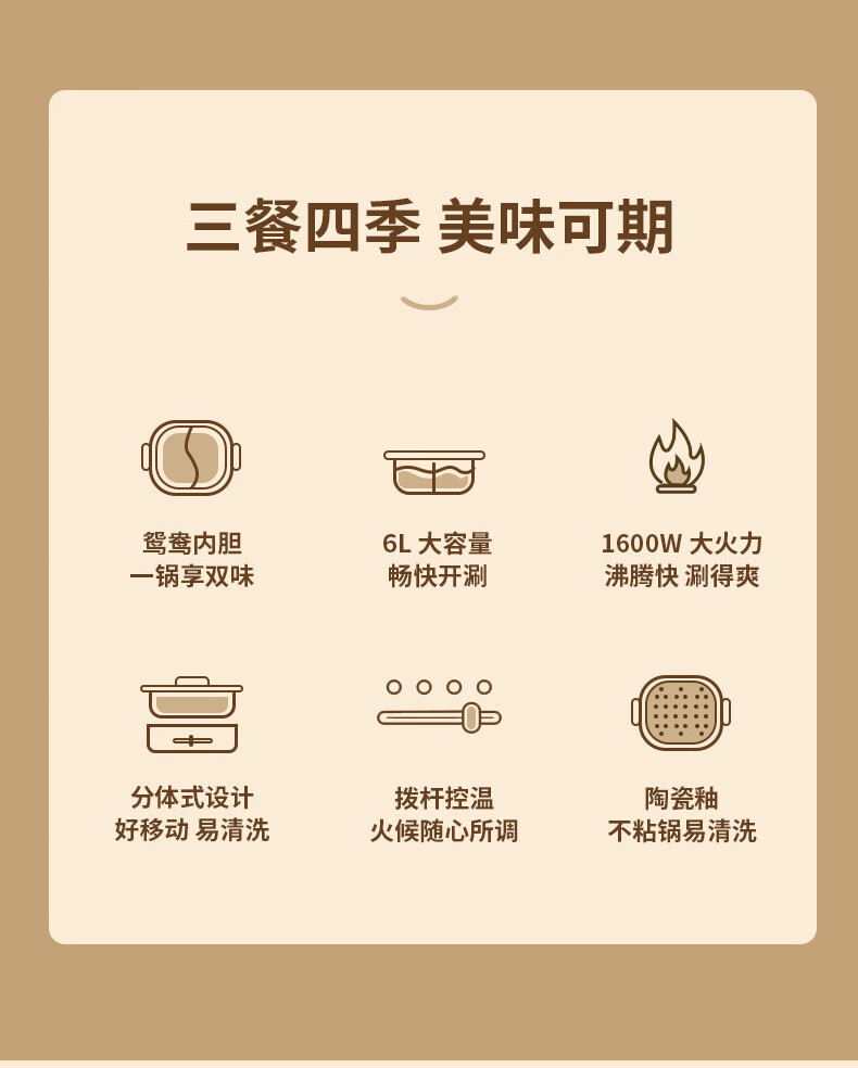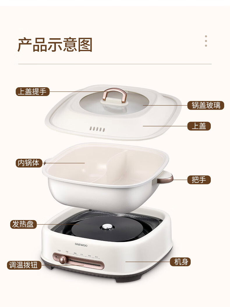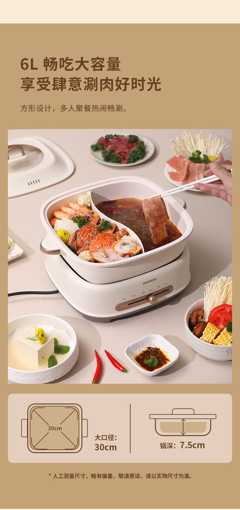 • 商品名称:大宇(DAEWOO)电火锅家用6L大容量鸳鸯锅多功能分体式锅DYZG-6L16 DYZG-6L16/个