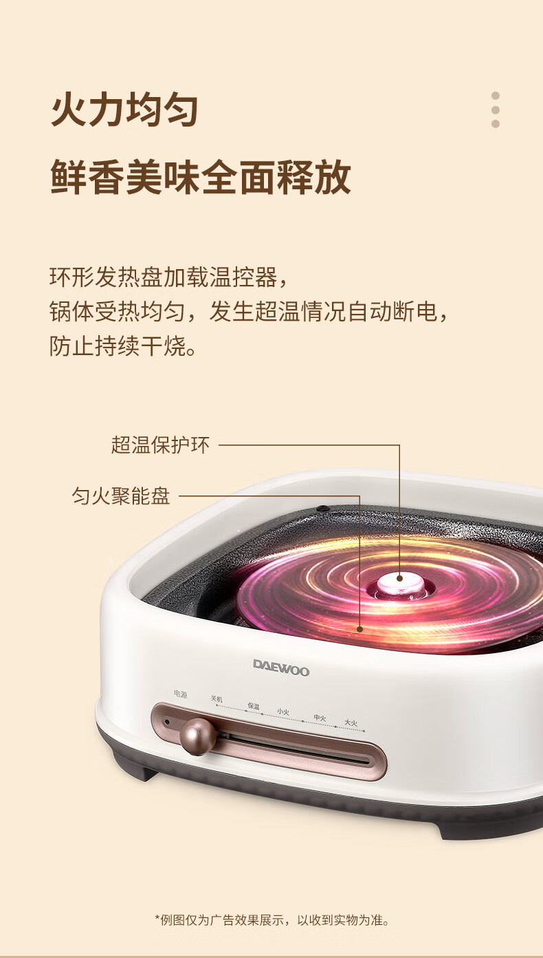 家用电器  > 厨房小电  > 多功能锅  >  大宇/DAEWOO  >  大宇(DAEWOO)电火锅家用6L大容量鸳鸯锅多功能分体式锅DYZG-6L16 DYZG-6L16/个