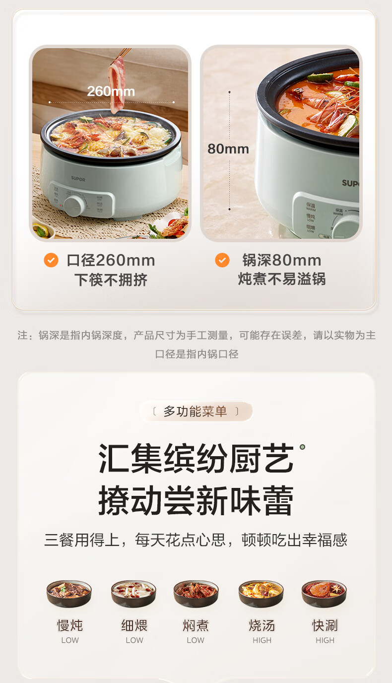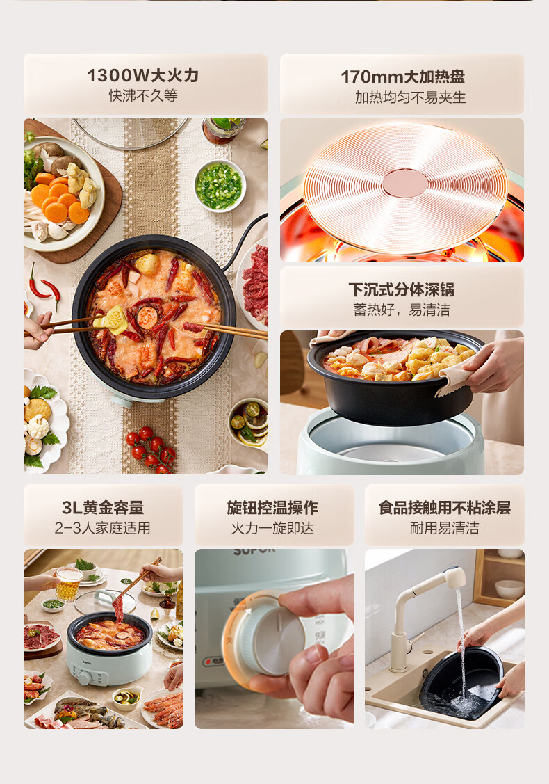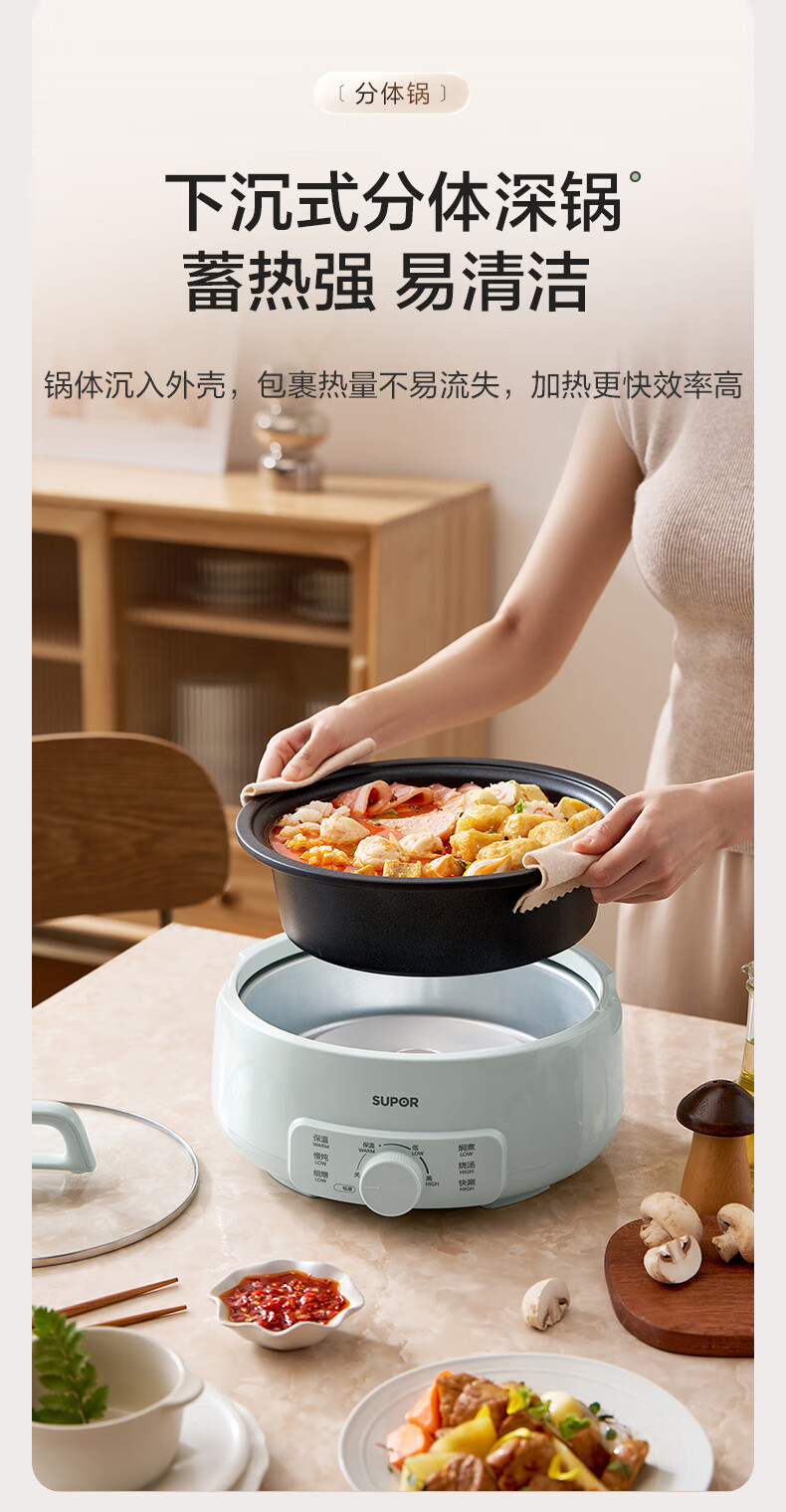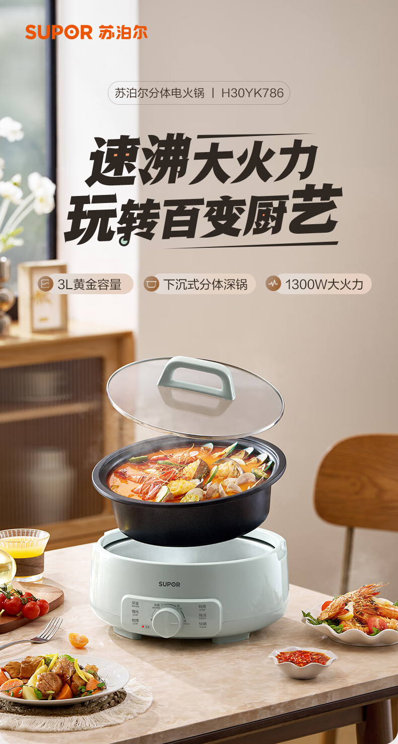 家用电器  > 厨房小电  > 多功能锅  >  苏泊尔/SUPOR  >  苏泊尔(SUPOR)电火锅 电煮锅 火锅专用锅 家用多功能涮肉锅 不粘分体可拆洗3L电热锅 电炖锅 多用途锅H30YK786 H30YK786/台