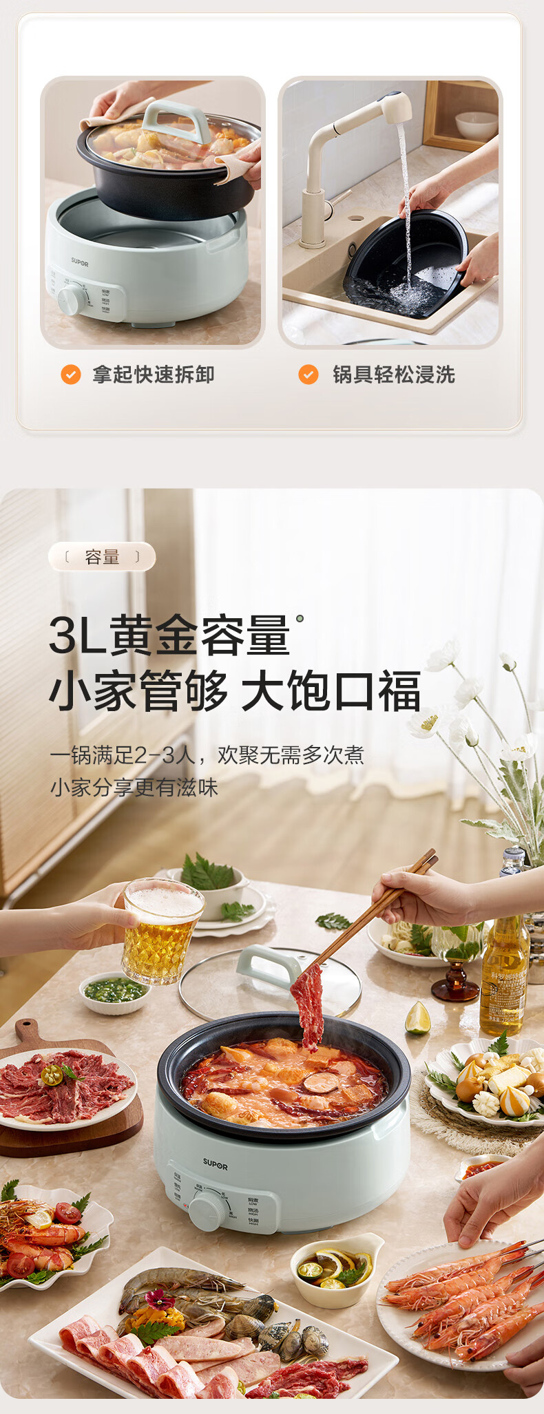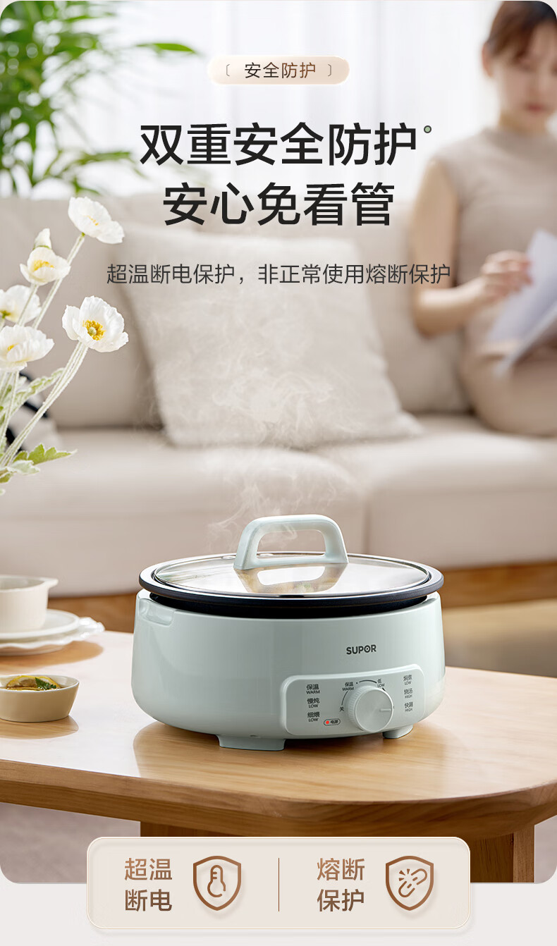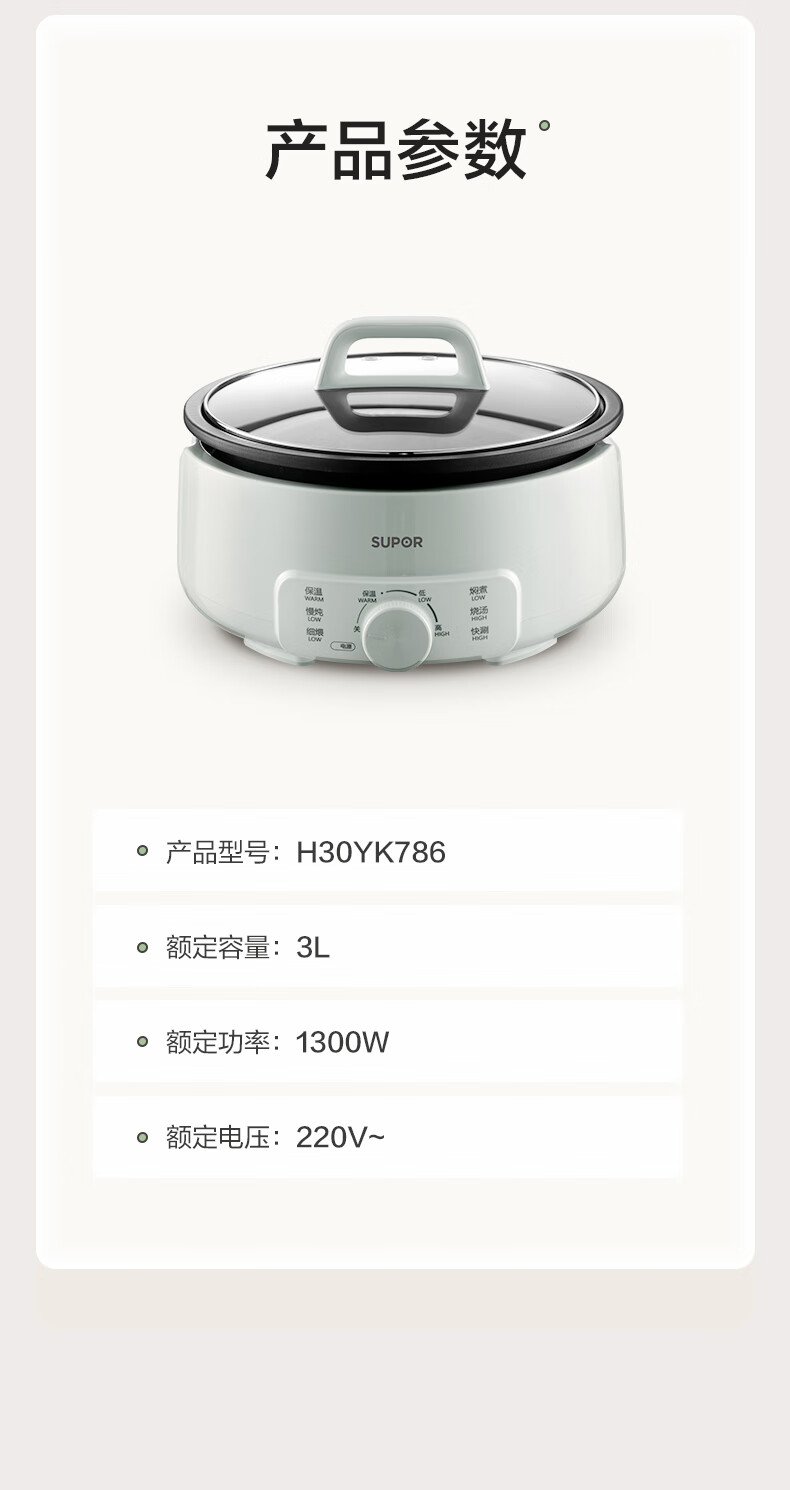 苏泊尔(SUPOR)电火锅 电煮锅 火锅专用锅 家用多功能涮肉锅 不粘分体可拆洗3L电热锅 电炖锅 多用途锅H30YK786 H30YK786/台