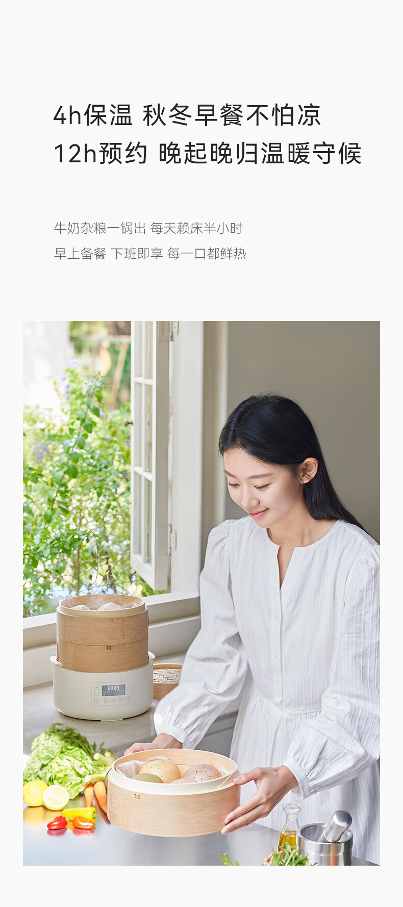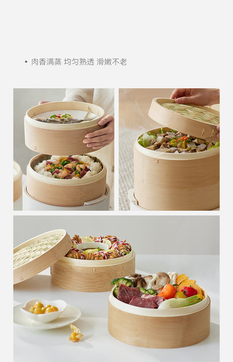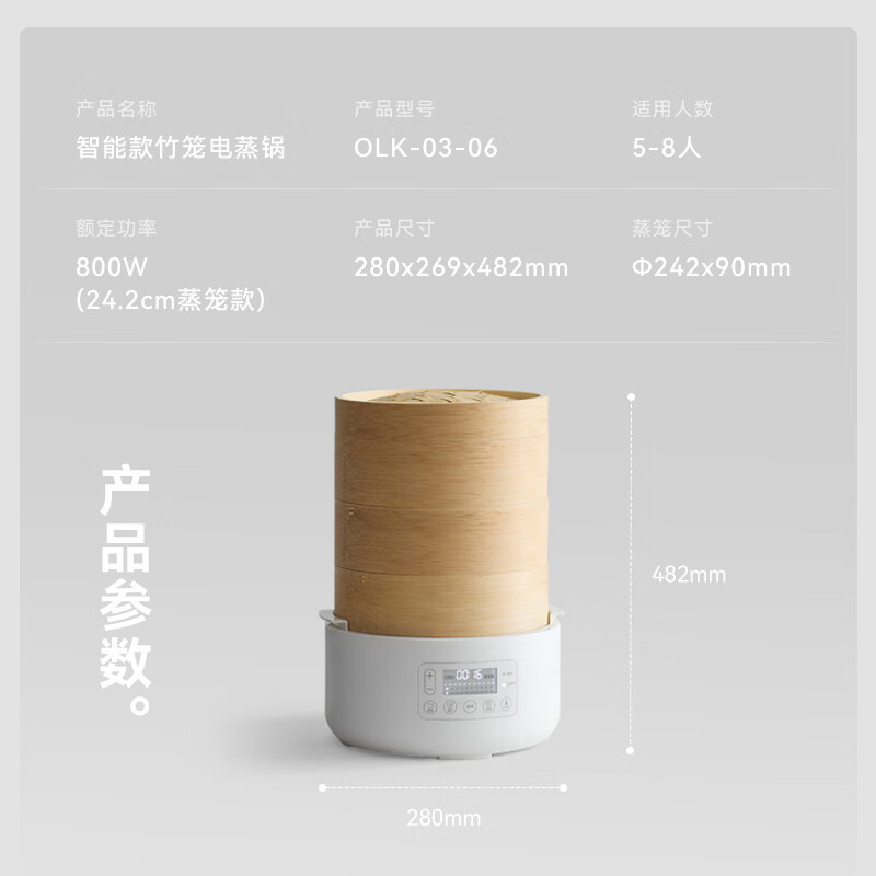 • 商品名称:olayks立时 竹笼电蒸锅 竹木蒸笼蒸锅 早餐机多功能锅 速热家用包子可定时预约保温智能升级款 3层 OLK-03-06/台