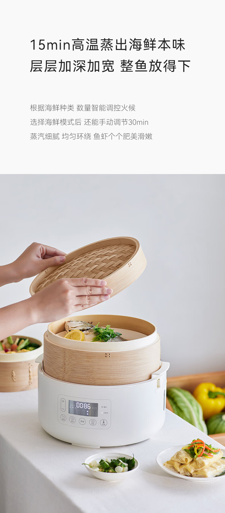 商品名称: olayks立时 竹笼电蒸锅 竹木蒸笼蒸锅 早餐机多功能锅 速热家用包子可定时预约保温智能升级款 3层 OLK-03-06/台
