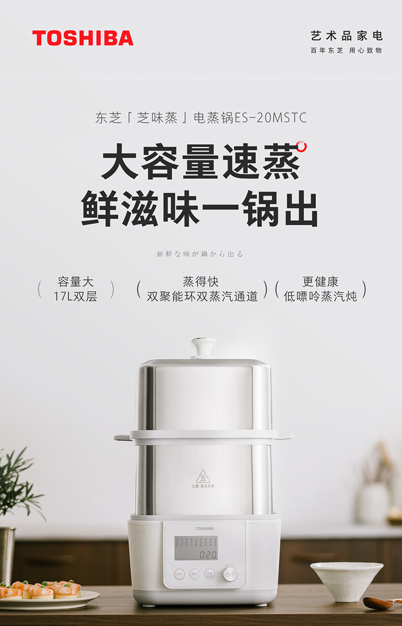 东芝(TOSHIBA)芝味蒸电蒸锅家用双层大容量蒸汽锅全自动婴儿适用炖蒸煮一体多功能锅 ES-20MSTC ES-20MSTC/台