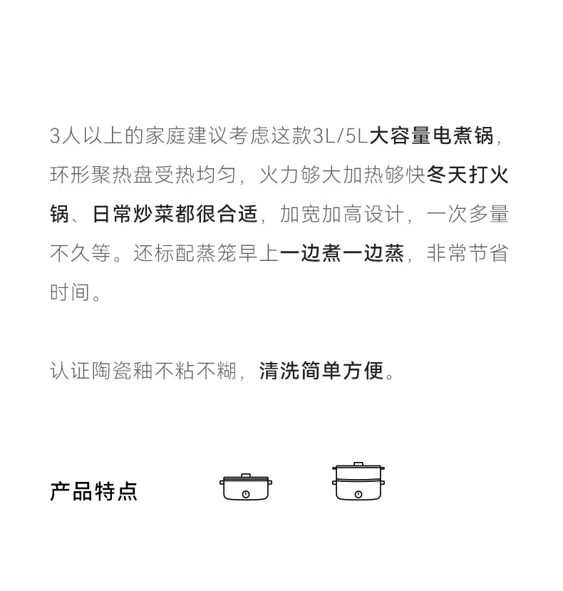 • 商品名称:olayks立时 电煮锅电火锅小电锅家用小火锅专用锅多功能锅煎炒蒸煮一体电热锅电蒸锅 3L YD-016/台