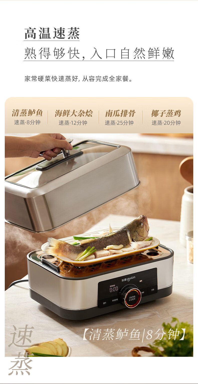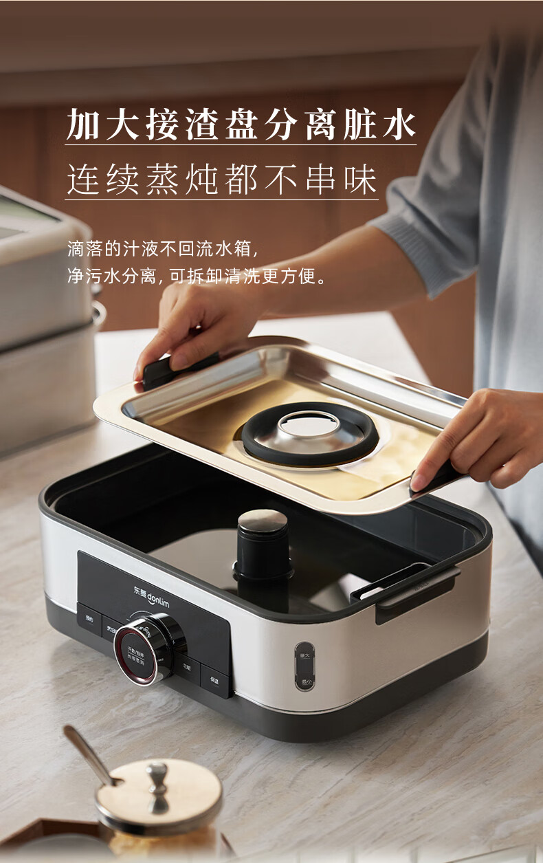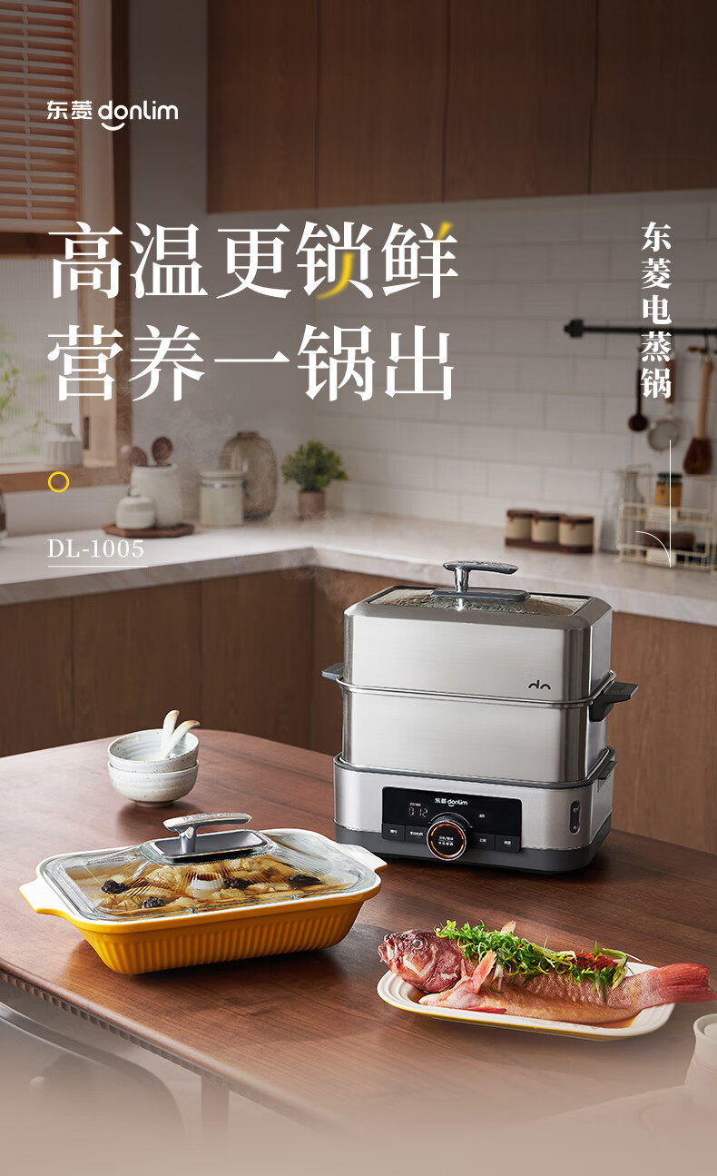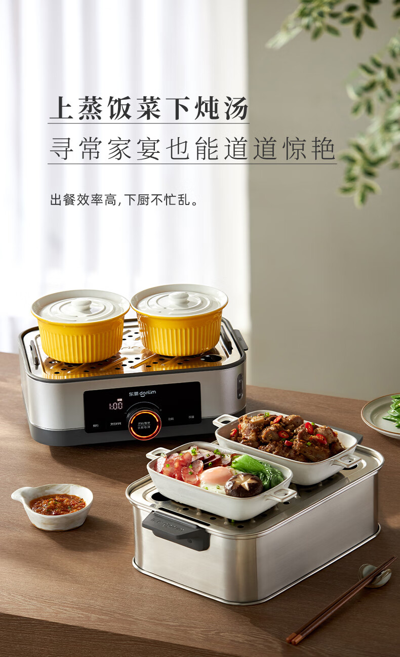 家用电器  > 厨房小电  > 多功能锅  >  东菱/Donlin  >  东菱(Donlim)电蒸锅炖蒸一体多功能蒸汽锅双层不锈钢 家用3-4人大容量陶瓷汽锅鸡高温速蒸预约保温蒸箱DL-1005 DL-1005/台