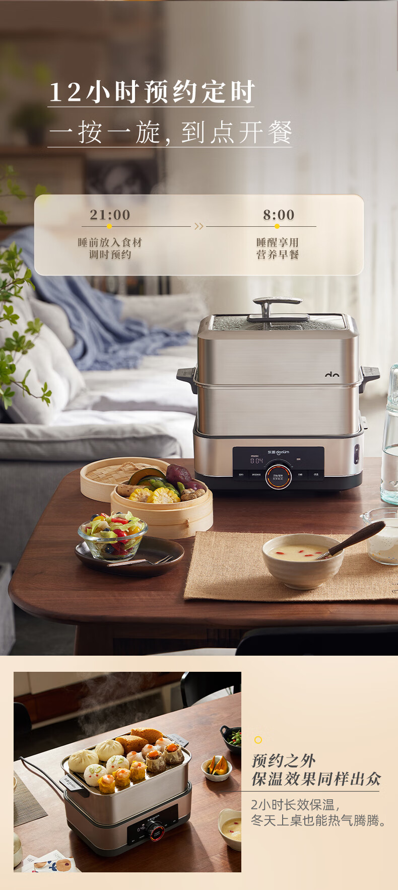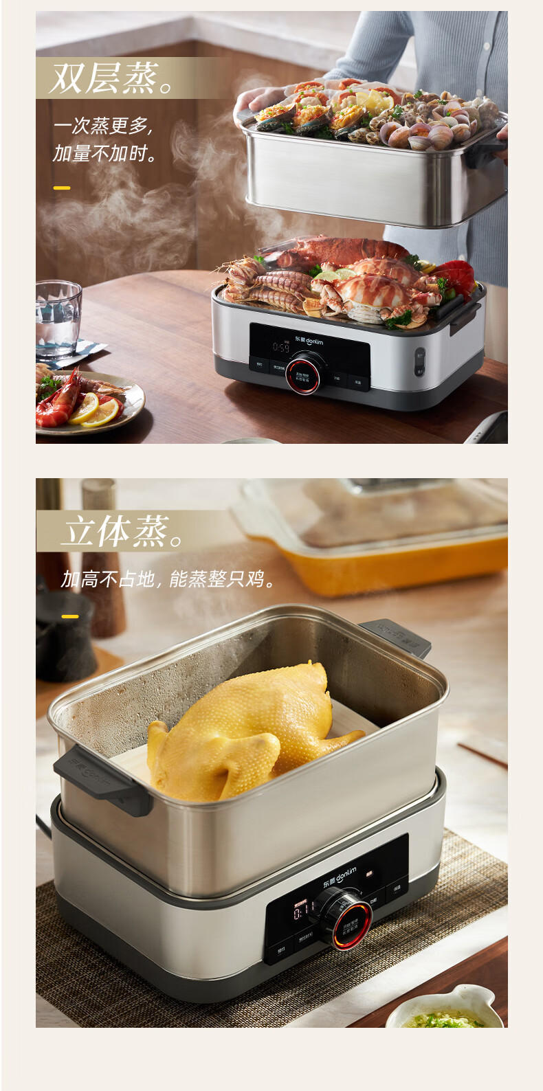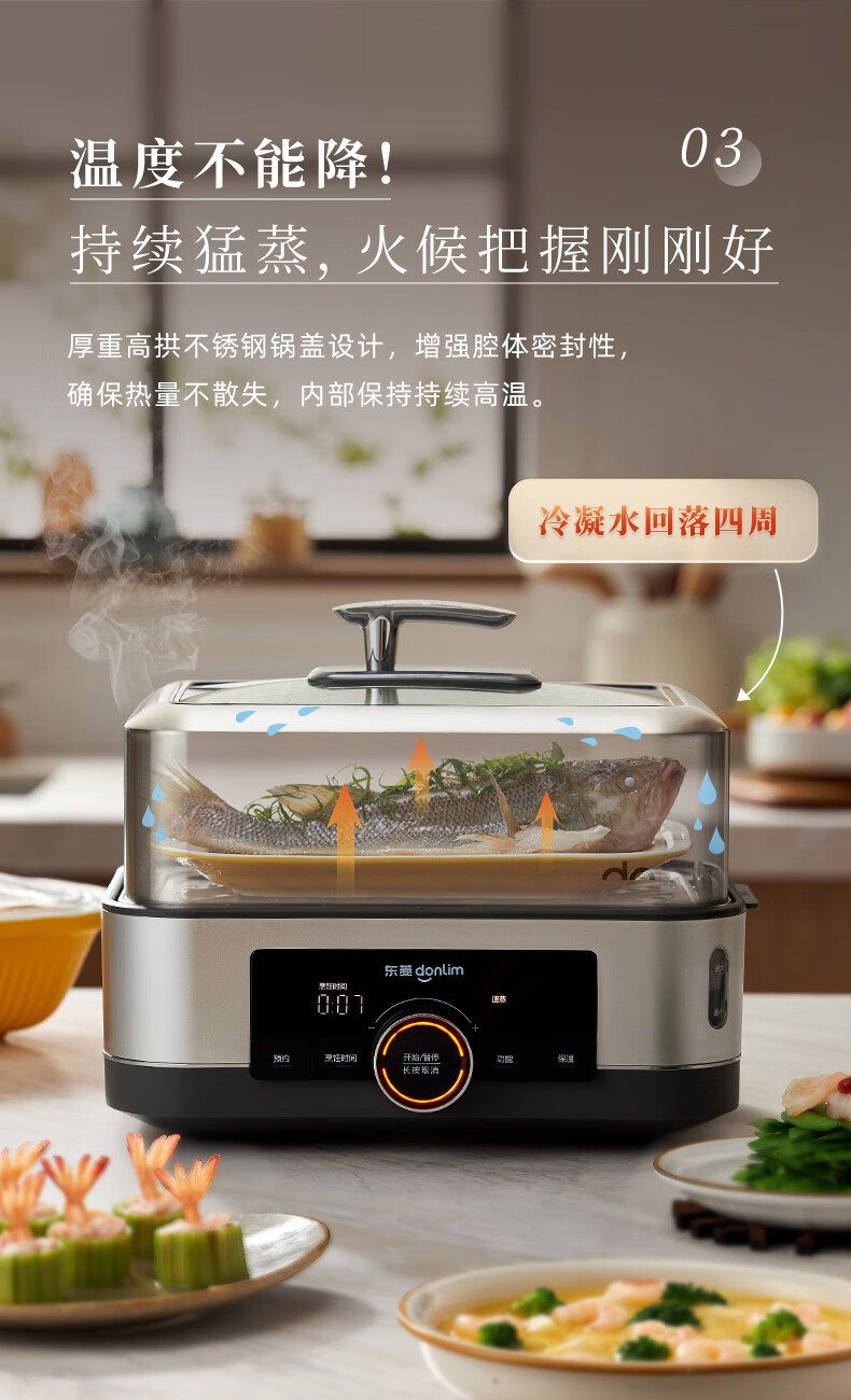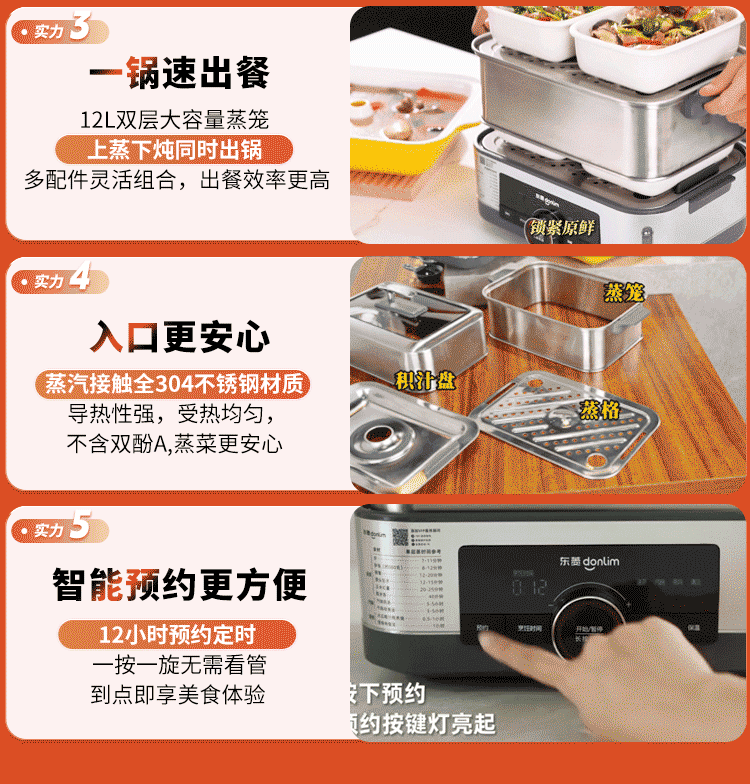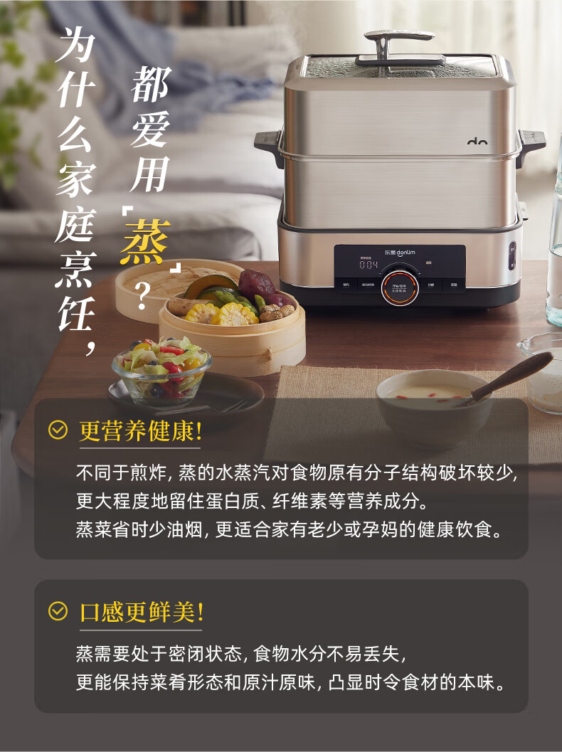 家用电器  > 厨房小电  > 多功能锅  >  东菱/Donlin  >  东菱(Donlim)电蒸锅炖蒸一体多功能蒸汽锅双层不锈钢 家用3-4人大容量陶瓷汽锅鸡高温速蒸预约保温蒸箱DL-1005 DL-1005/台