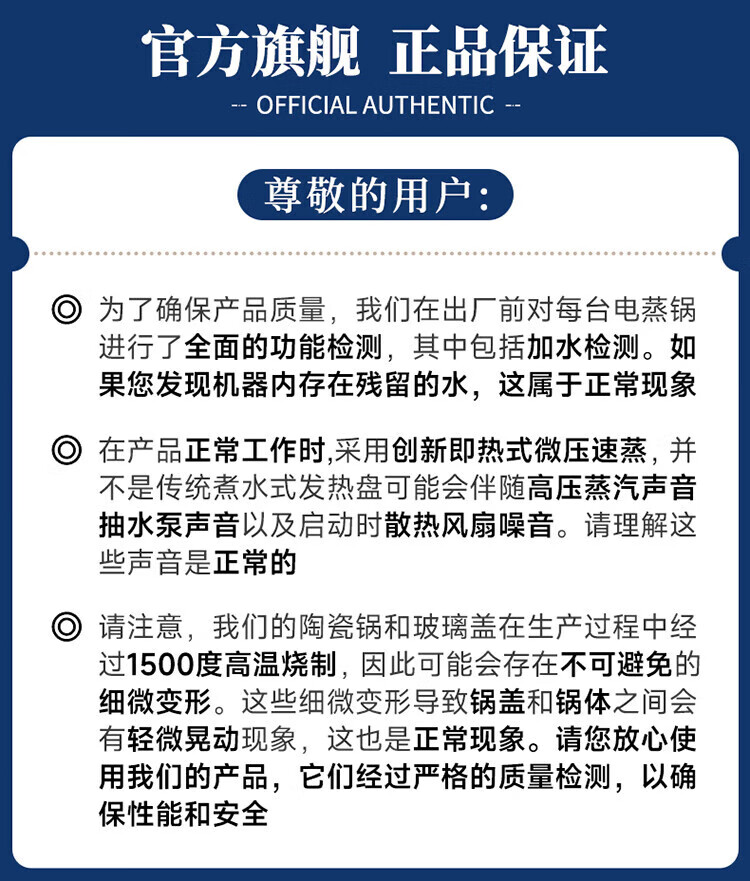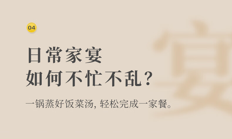 包装清单: 外包装箱*1,主机*1,接渣盘*1,下蒸笼*1,上蒸笼*1,蒸汽锅盖*1,蒸架板*2,蒸鱼盘*1,蒸汽锅*1,说明书*1,电源线*1,量杯*1